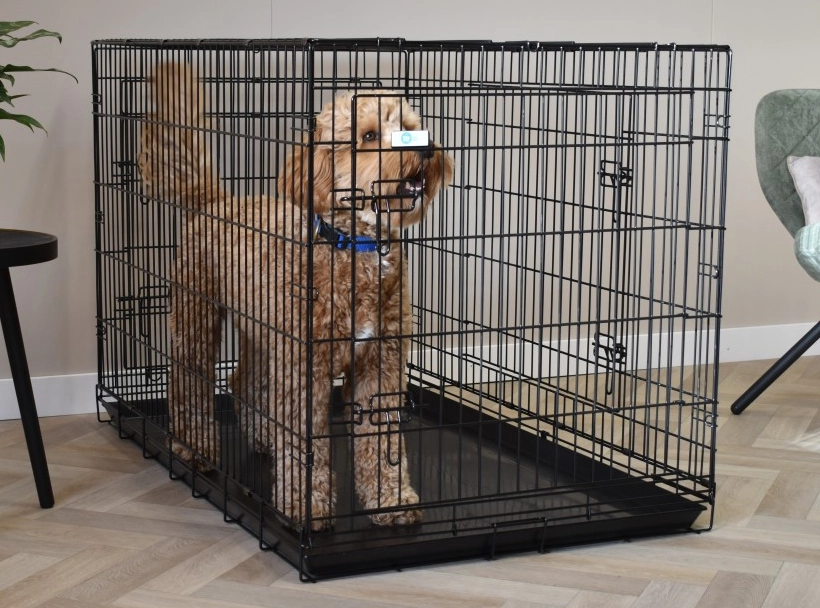 - The dog cage is easy to fold and therefore very compact to transport. It is even equipped with a handle