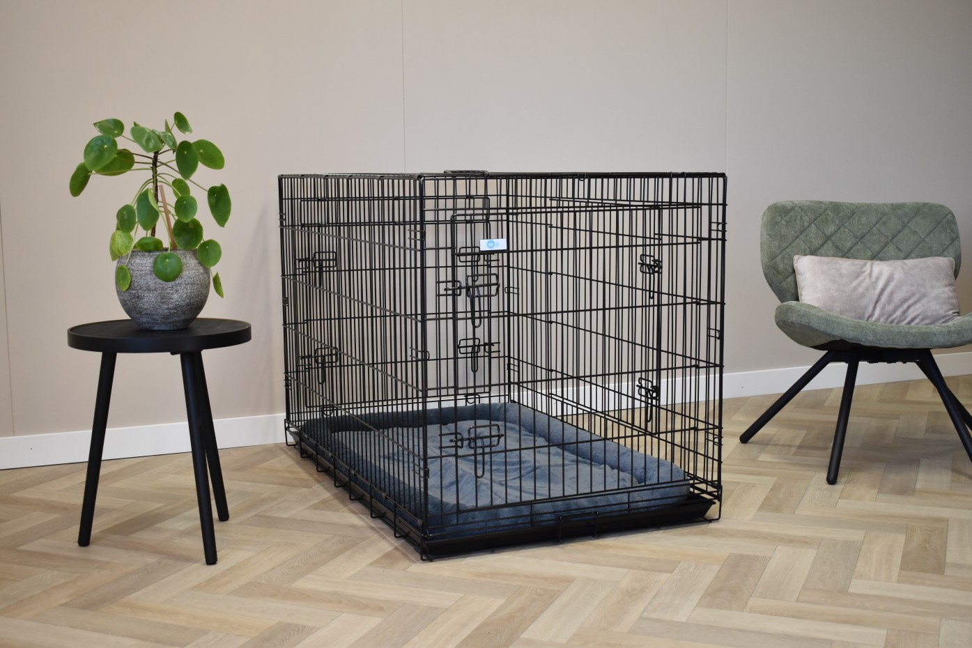 - The dog cage is easy to fold and therefore very compact to transport. It is even equipped with a handle