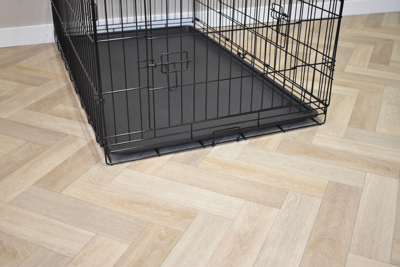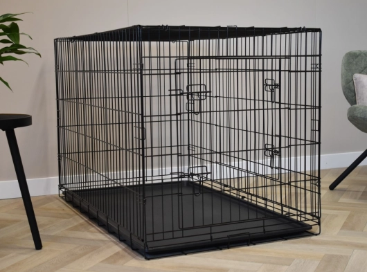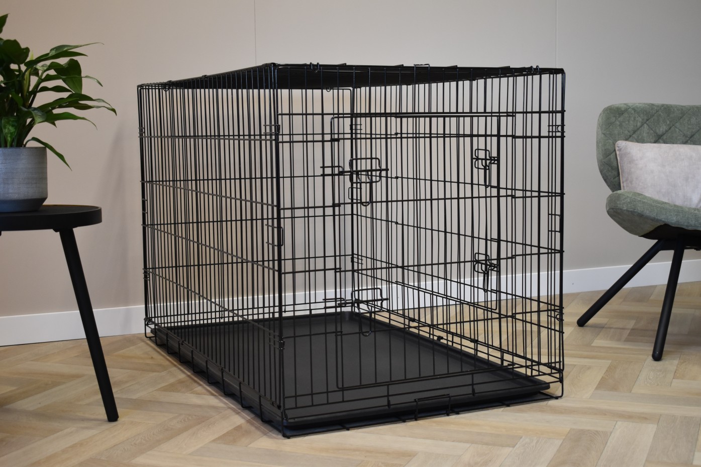 - The dog cage is easy to fold and therefore very compact to transport. It is even equipped with a handle