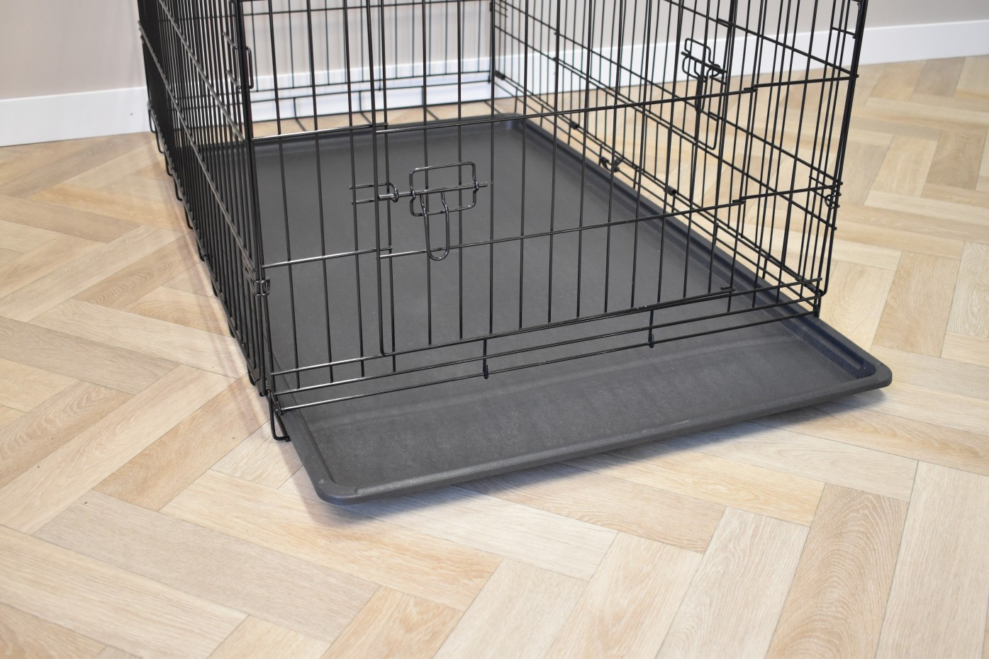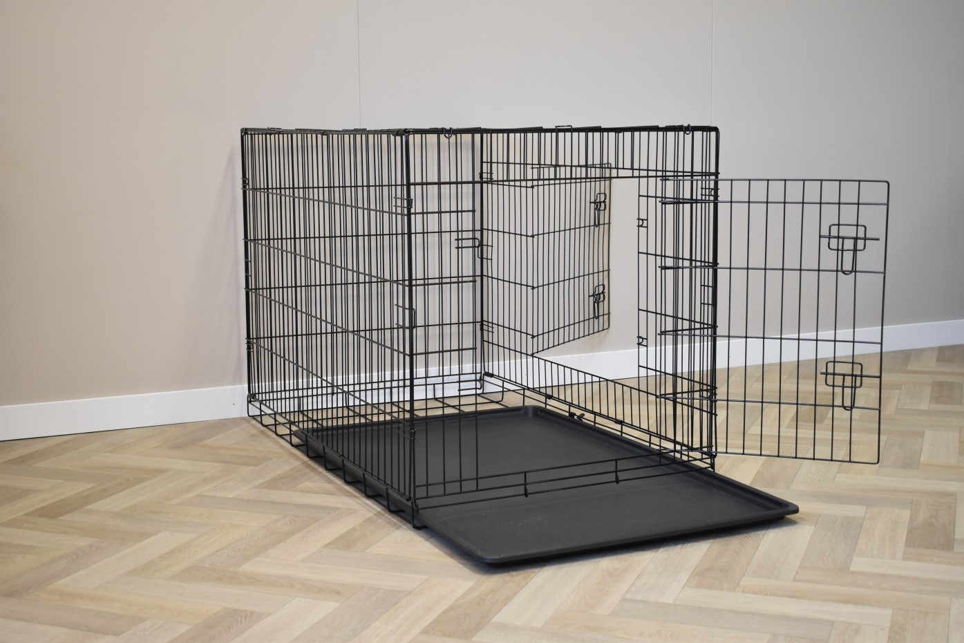 - The dog crate is provided with solid doors with locks