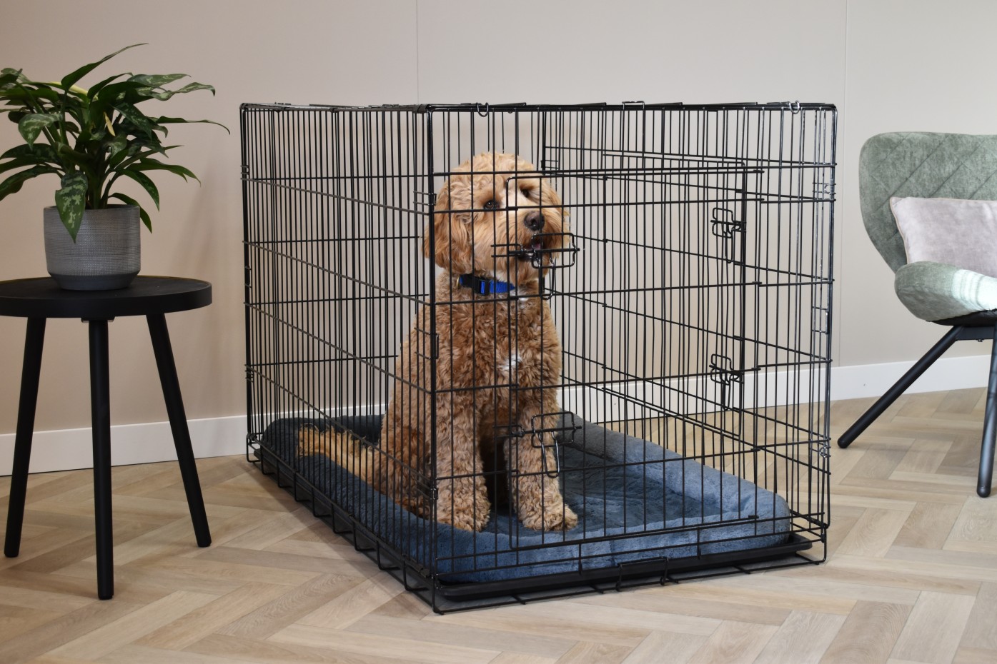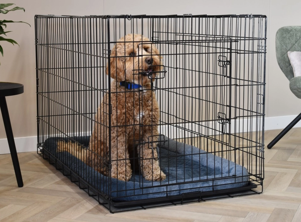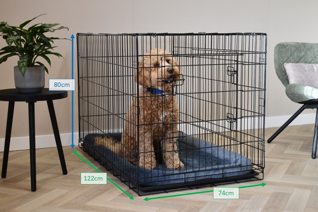- The dog cage is easy to fold and therefore very compact to transport. It is even equipped with a handle