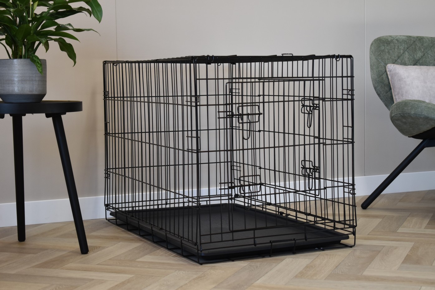 - The dog crate is provided with solid doors with locks