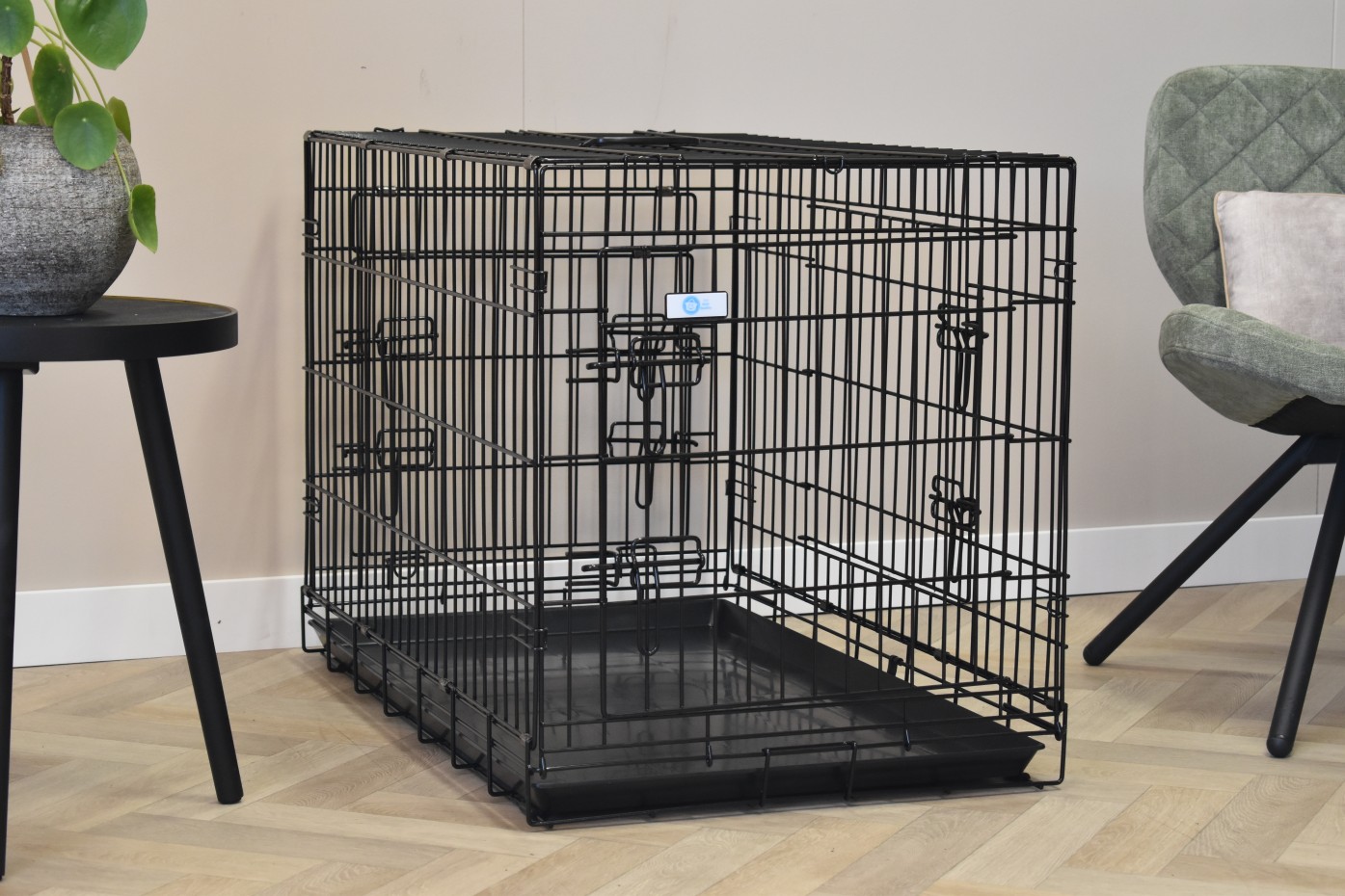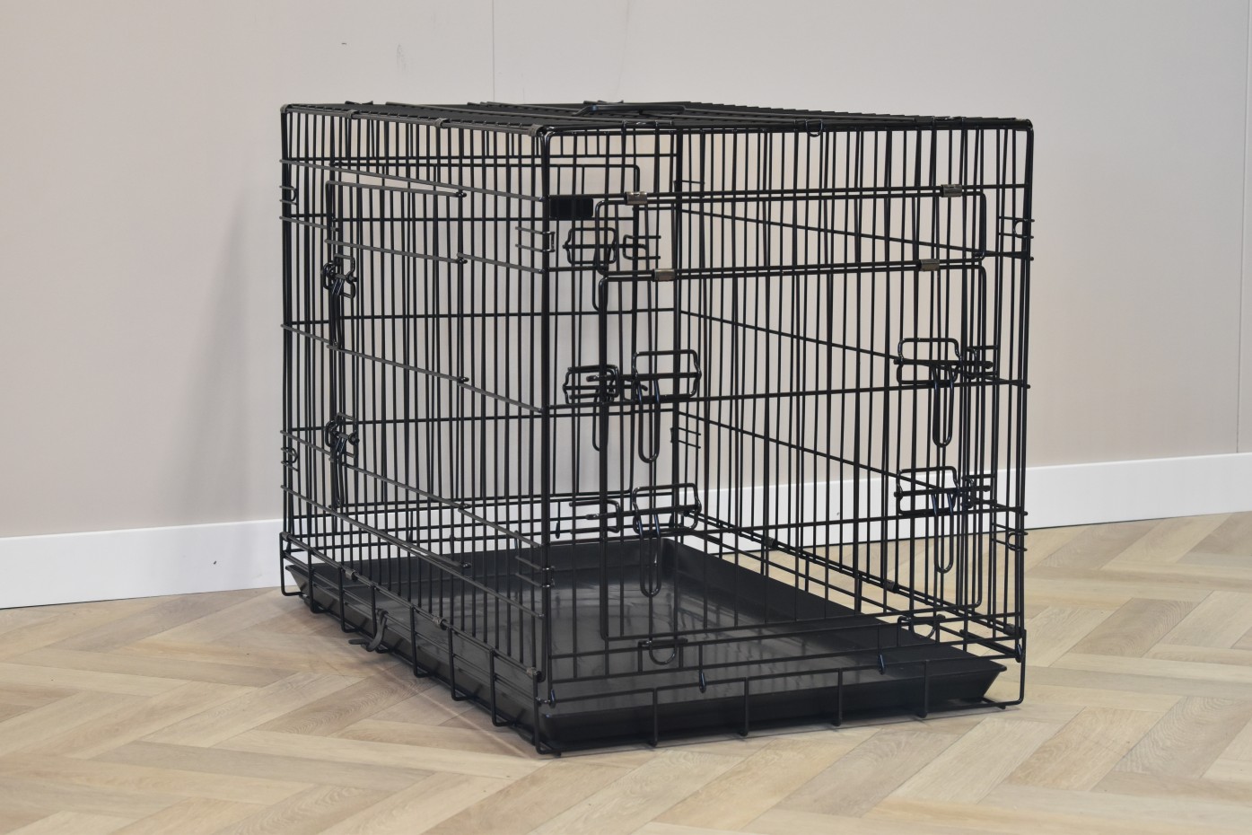 - Very solid dog cage with sturdy, thick, black powder-coated bars