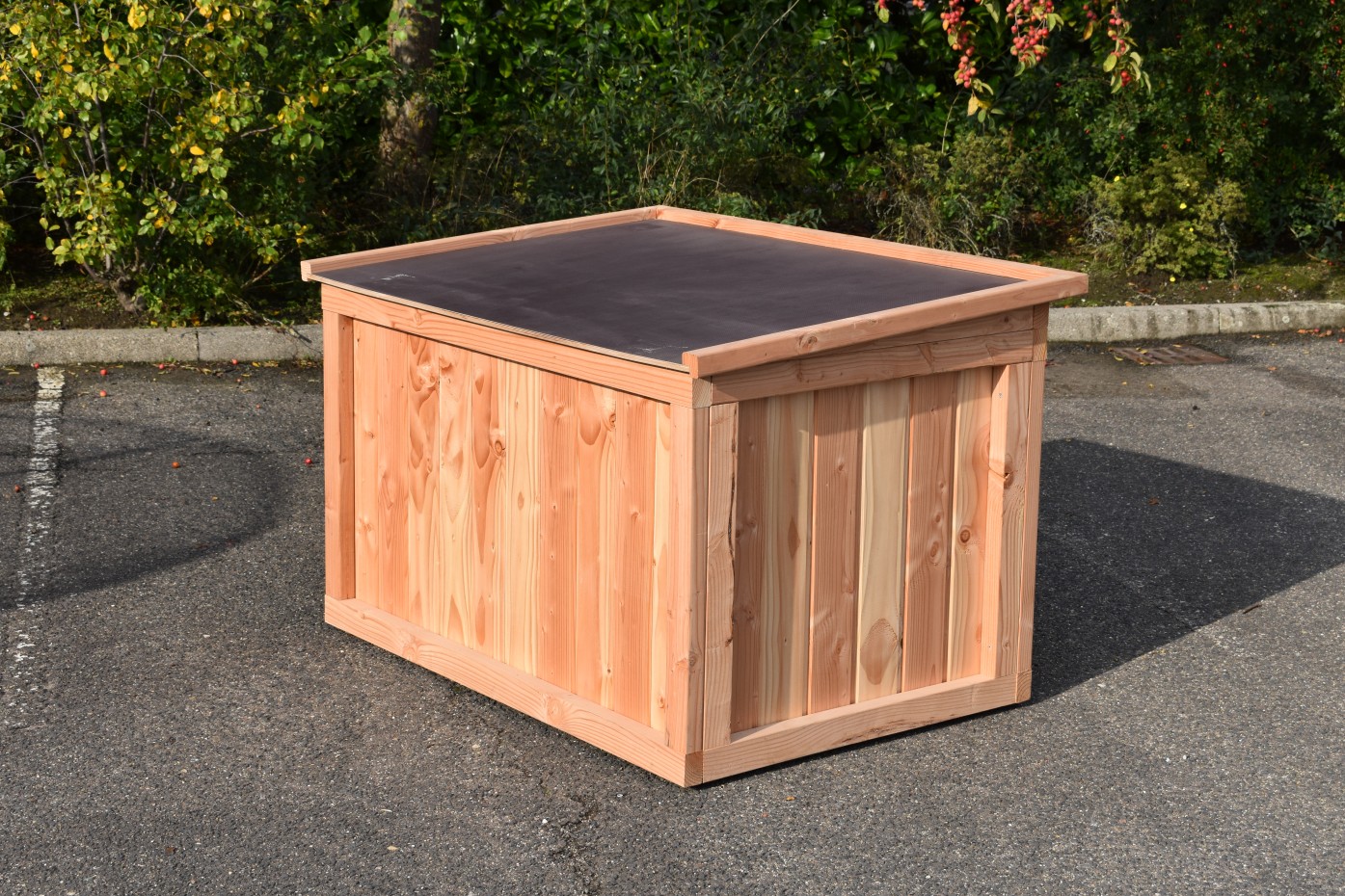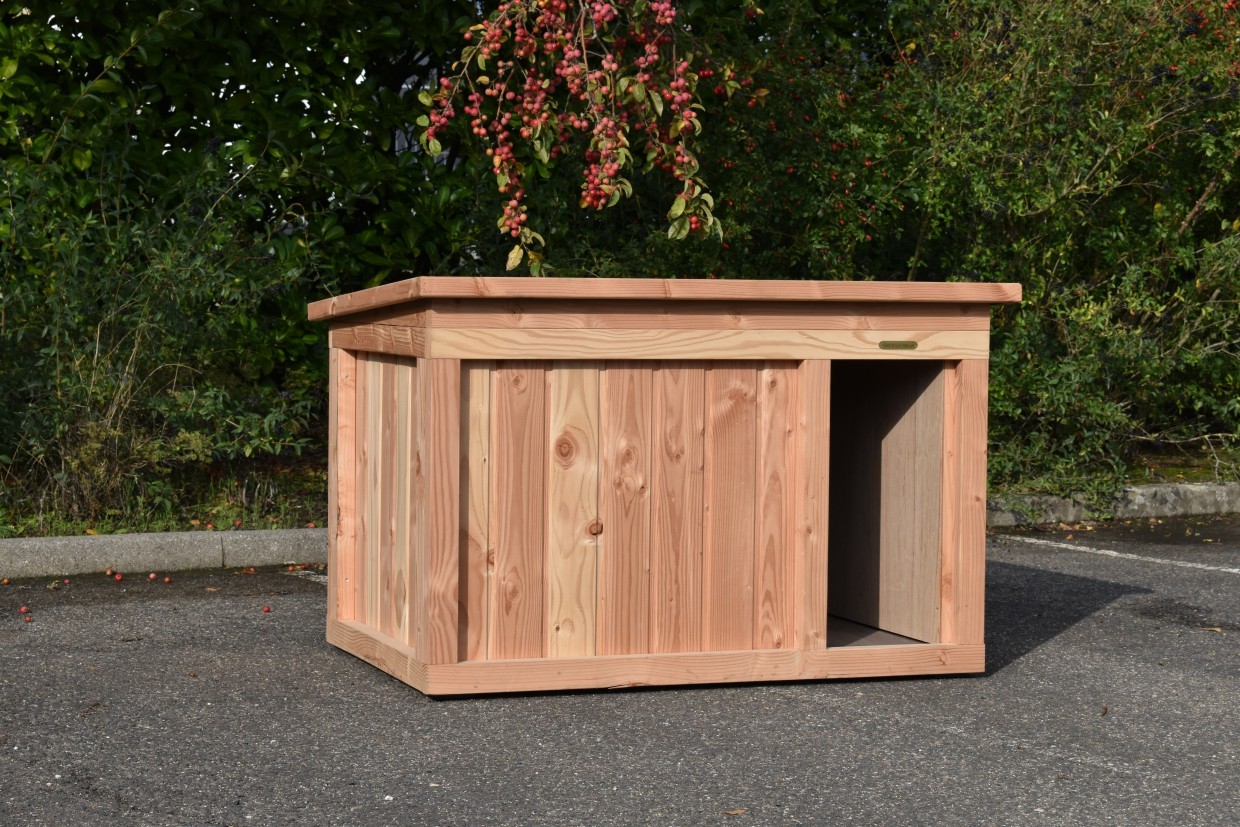 Dog house Block Large is a quality house, made of Douglaswood. It is both in the winter and summer suitable for large sized dogs, such as a Shepherd Dog, Retriever, Rottweiler, Boxer, Bernese Mountain Dog. The dog house is available in 3 different sizes.