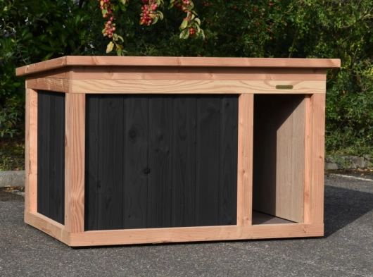 Dog house Block Large is a quality house, made of Douglaswood. It is both in the winter and summer suitable for large sized dogs, such as a Shepherd Dog, Retriever, Rottweiler, Boxer, Bernese Mountain Dog. The dog house is available in 3 different sizes.