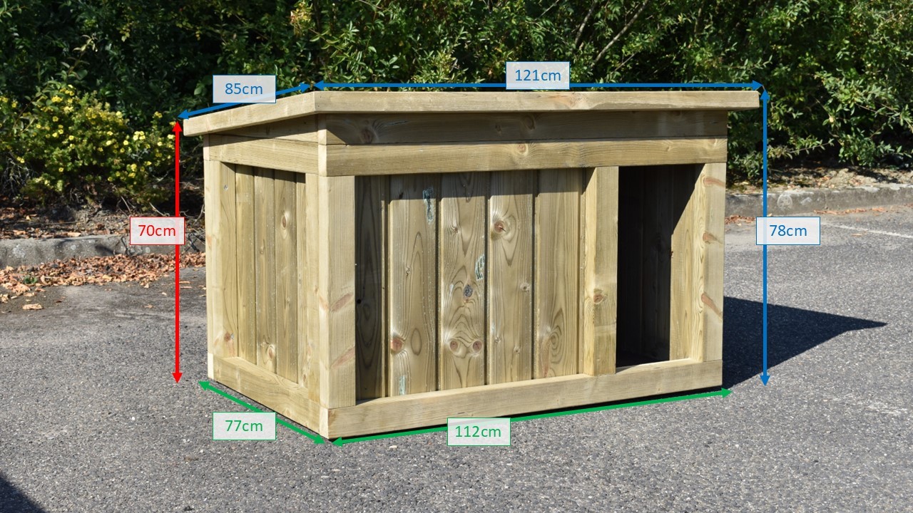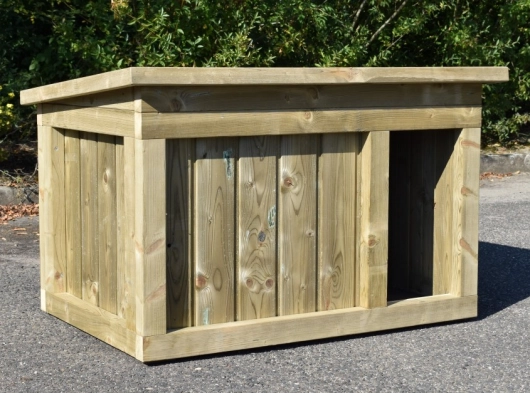- Doghouse of high pressure treated pinewood in combination with betonplex