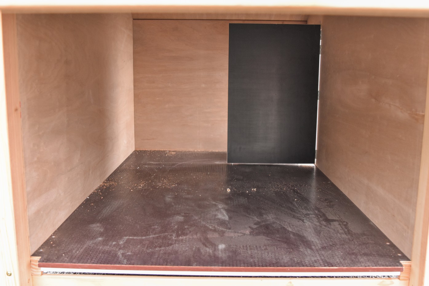 - The doghouse has black plastic feet, making it easier to move, and the hutch is better protected against moisture