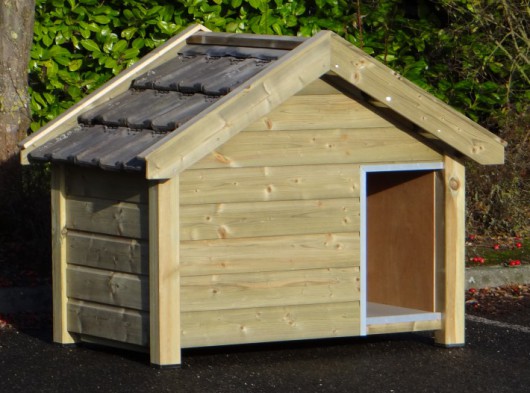 The roof takes care of your dog during the rain. Some dog houses are equipped with doors (you probably don’t have the possibility to watch your dog all the time) and some dog houses have a wooden windbreak. When you buy a dog house, always keep in mind that the doghouse is not to big, neither to small. Then your dog get the ultimate feeling and your dog will become warmer earlier.