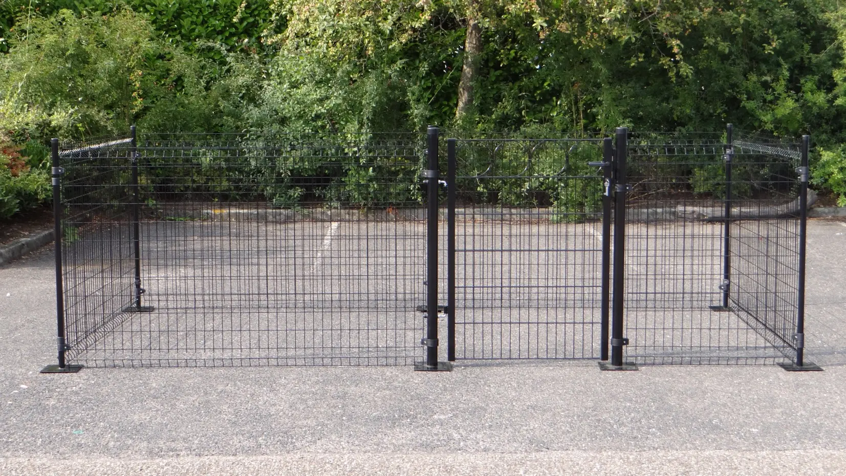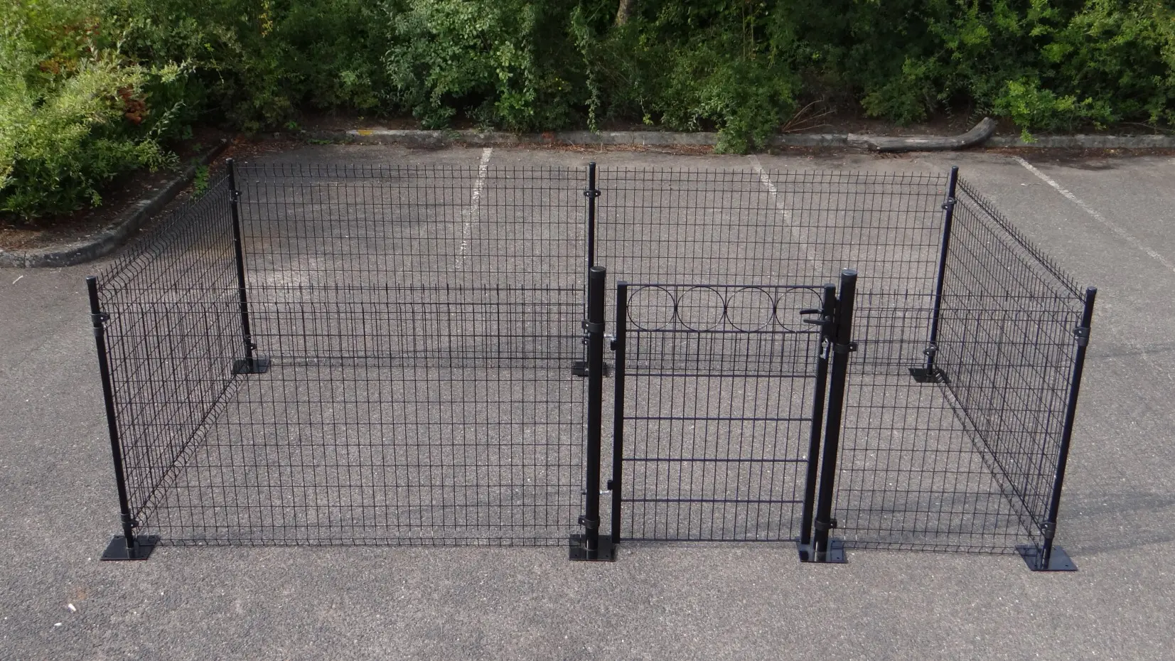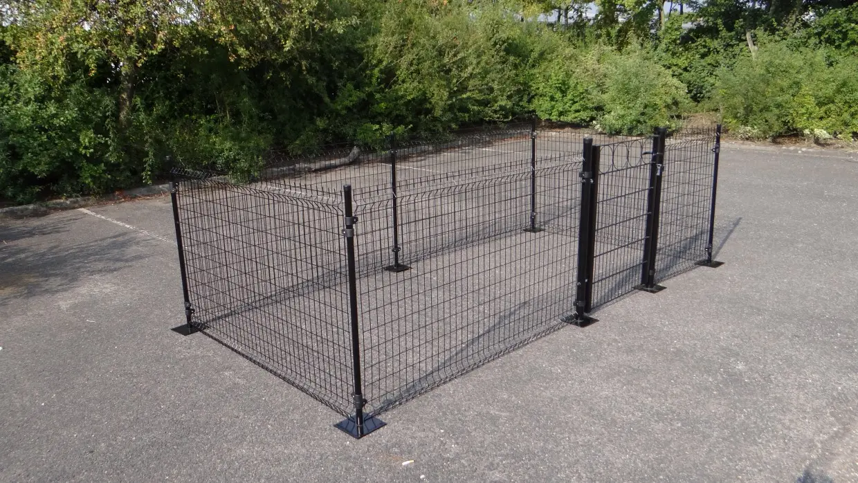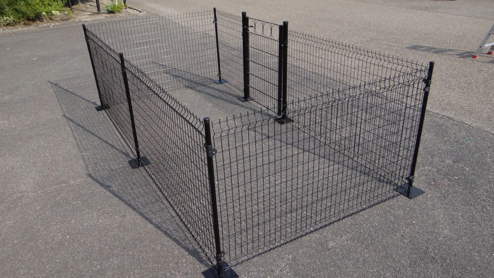 Chicken fence of 8 m2 stabil fence. It is easy to anchor the fence on a hard surface. We do have them available for a soft surface as well. The poles are longer and they should go 45 cm into the ground.