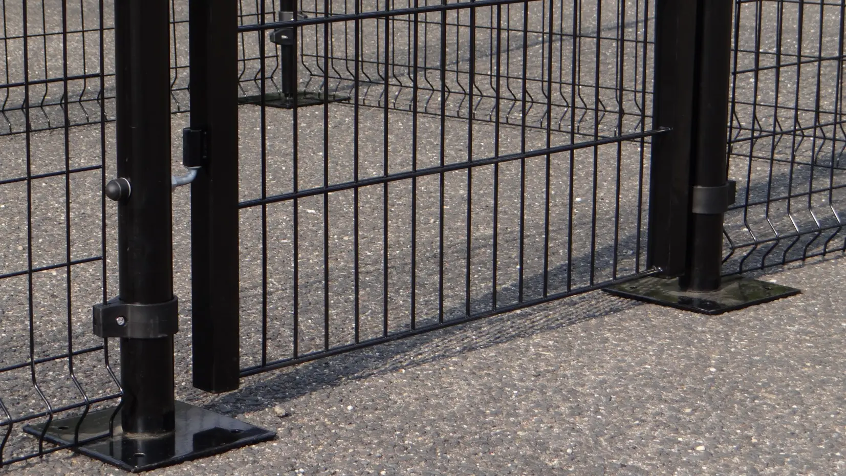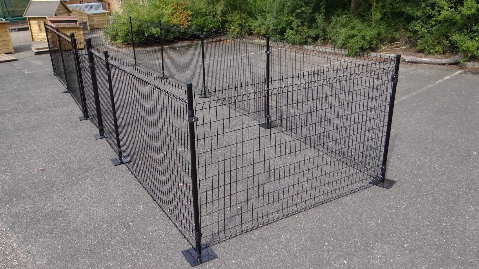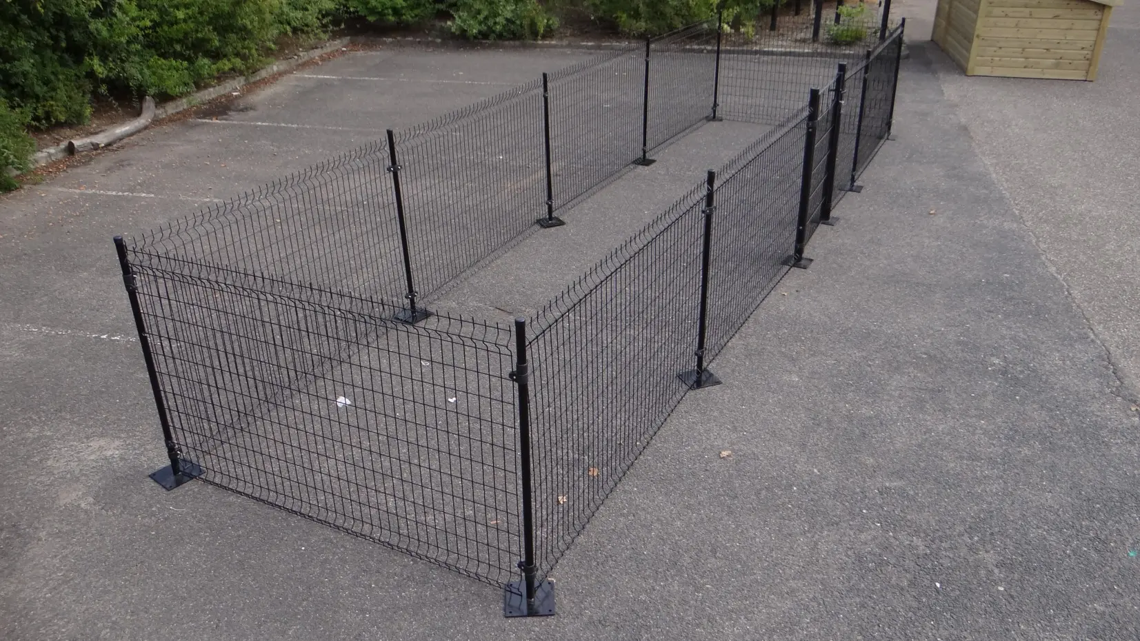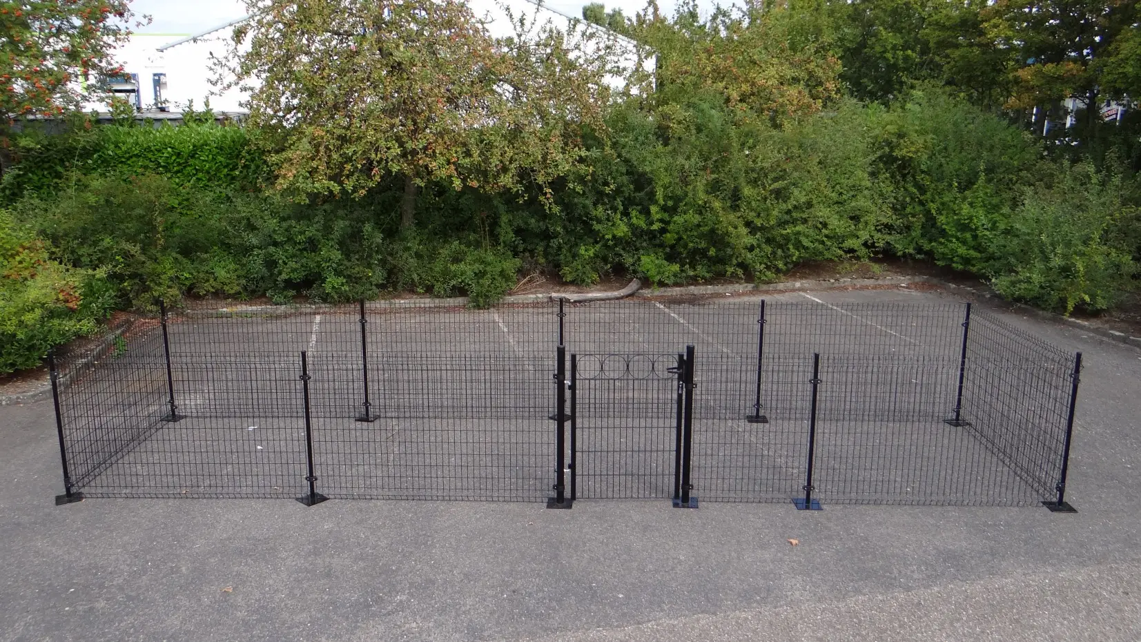 Chicken fence of 8 m2 stabil fence. It is easy to anchor the fence on a hard surface. We do have them available for a soft surface as well. The poles are longer and they should go 45 cm into the ground.