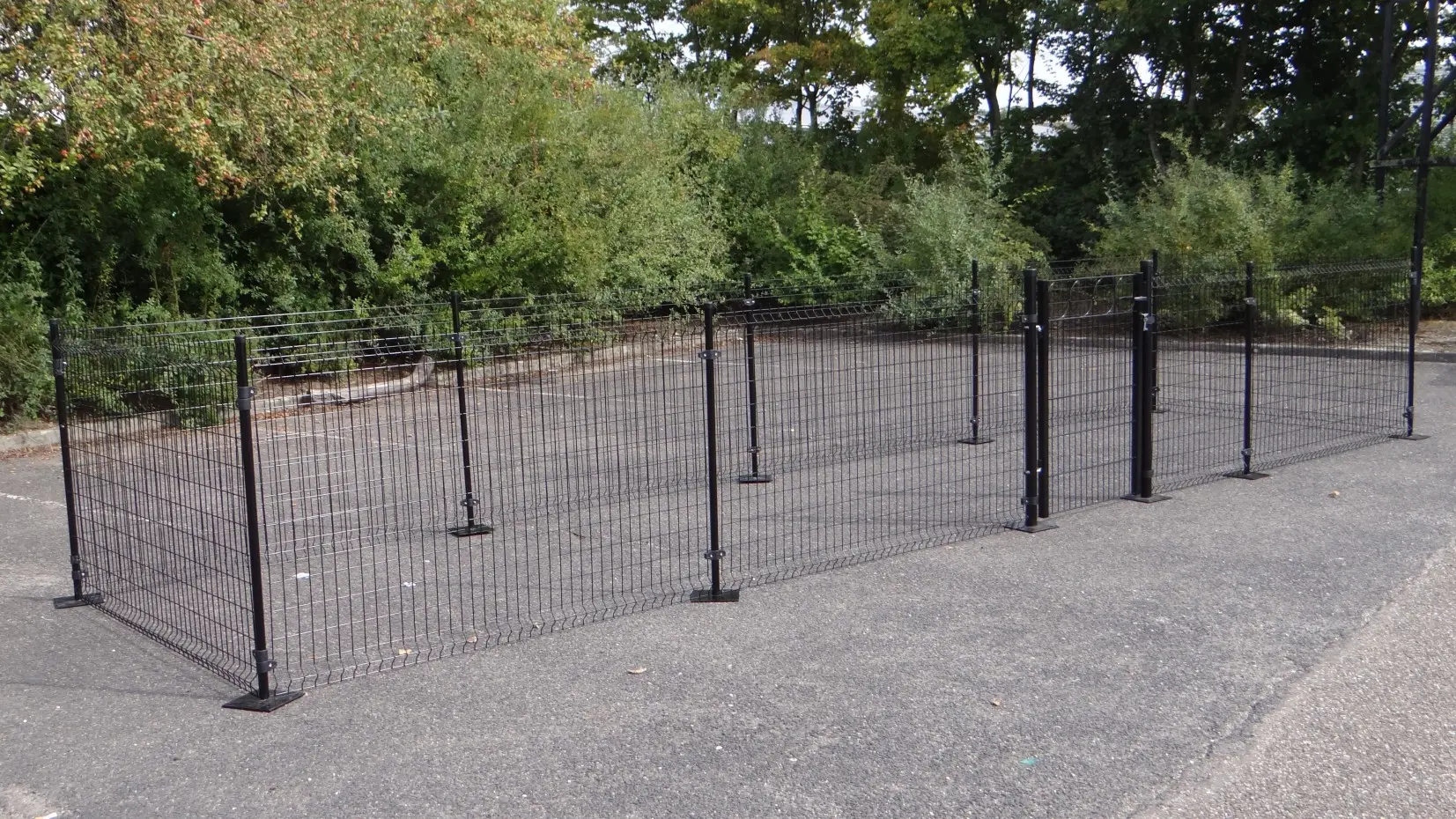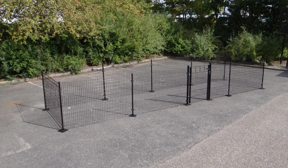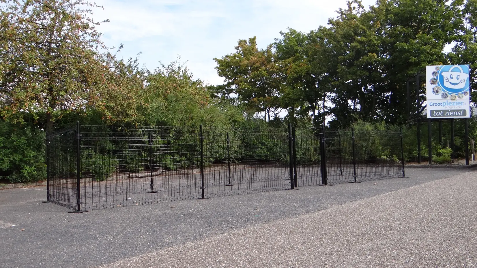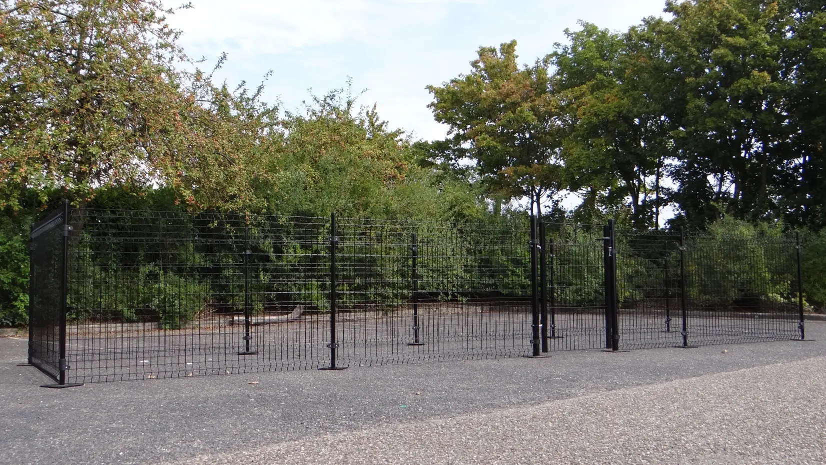 Chicken fence of 8 m2 stabil fence. It is easy to anchor the fence on a hard surface. We do have them available for a soft surface as well. The poles are longer and they should go 45 cm into the ground.