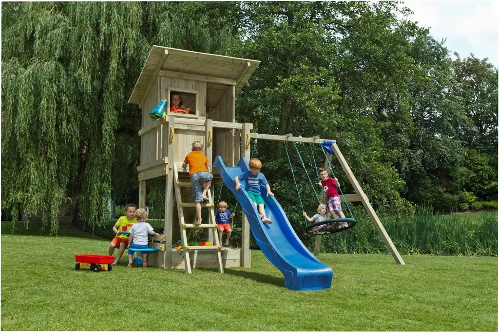 Irresistible is this Beach Hut play tower due to its characteristic appearance. Children will enjoy hours of fun in the charming playhouse with a balcony. In the large sandbox under the tower, they can unleash their imagination; while building sandcastles, they will feel like they are on the beach. The combination with the add-on swing @Swing offers children a lot of variety. This play tower has a platform height of 120 cm.