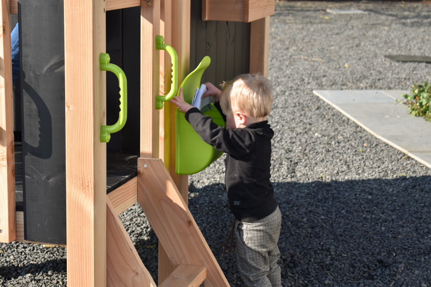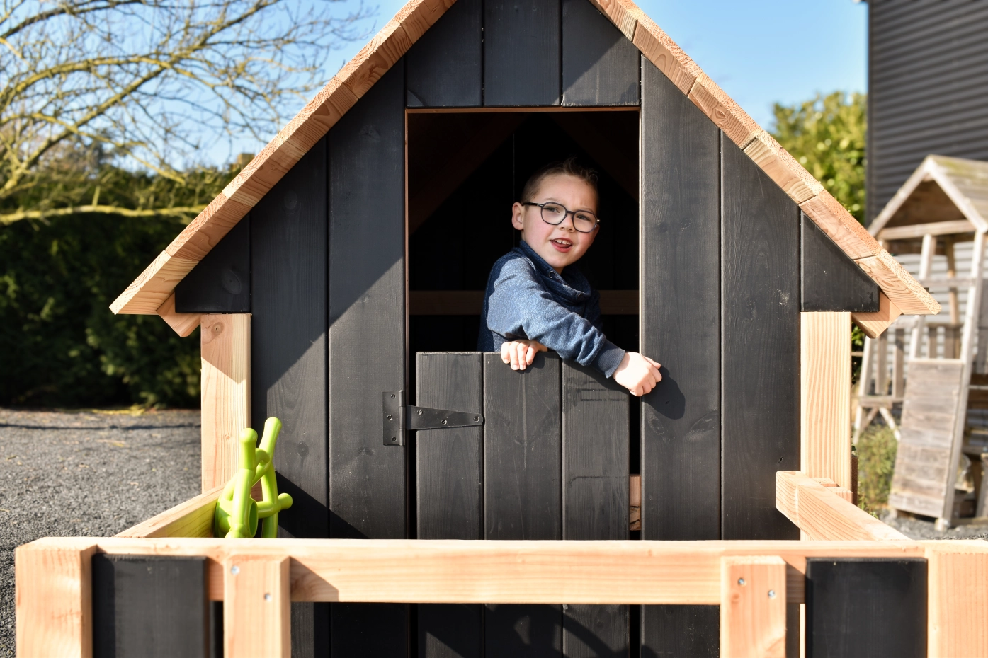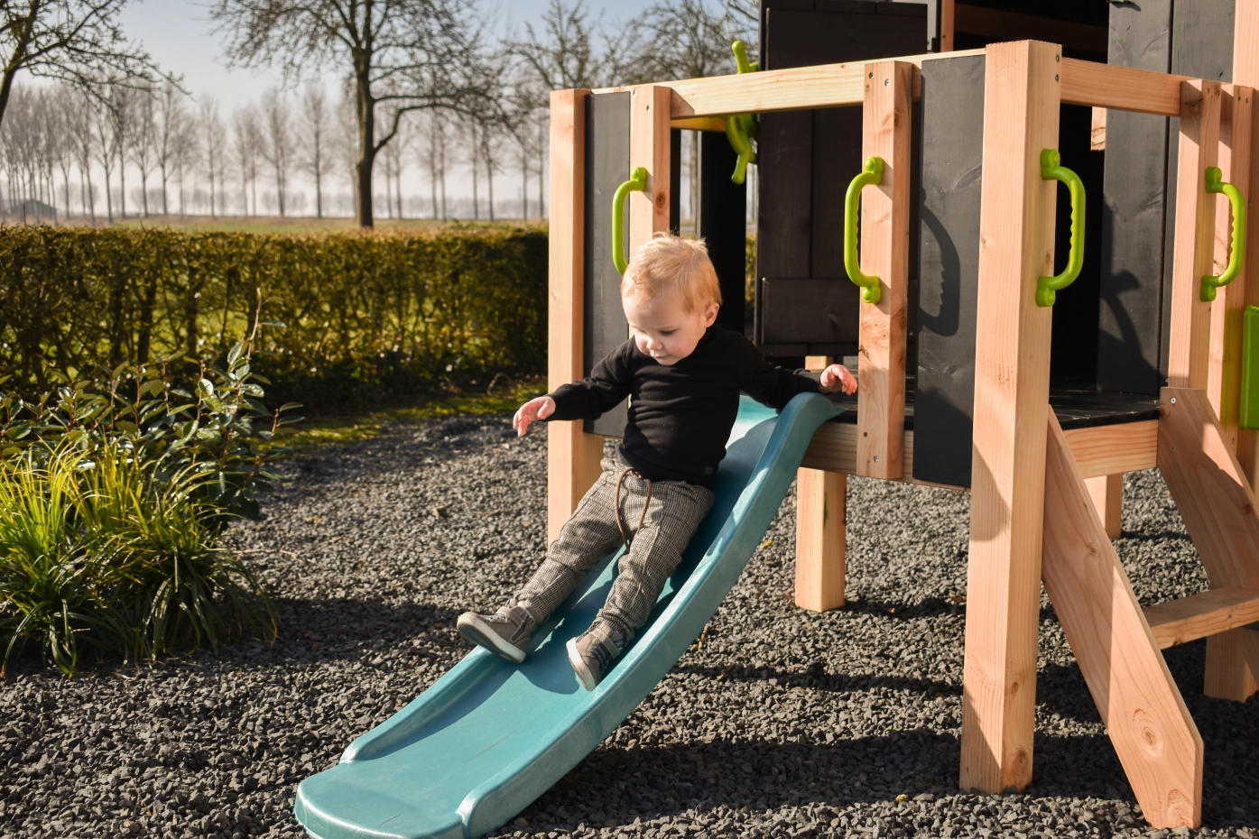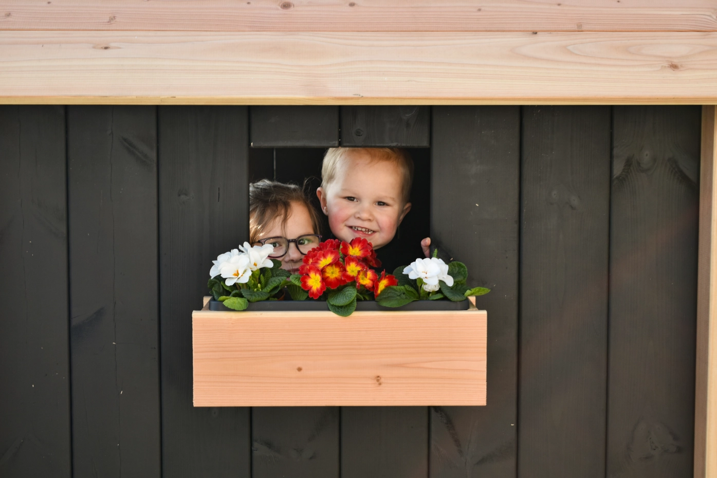 Playhouse Dream 60 is a cosy and sturdy playhouse with a platform height of 60 cm – low to the ground, yet with a fun slide for endless play.