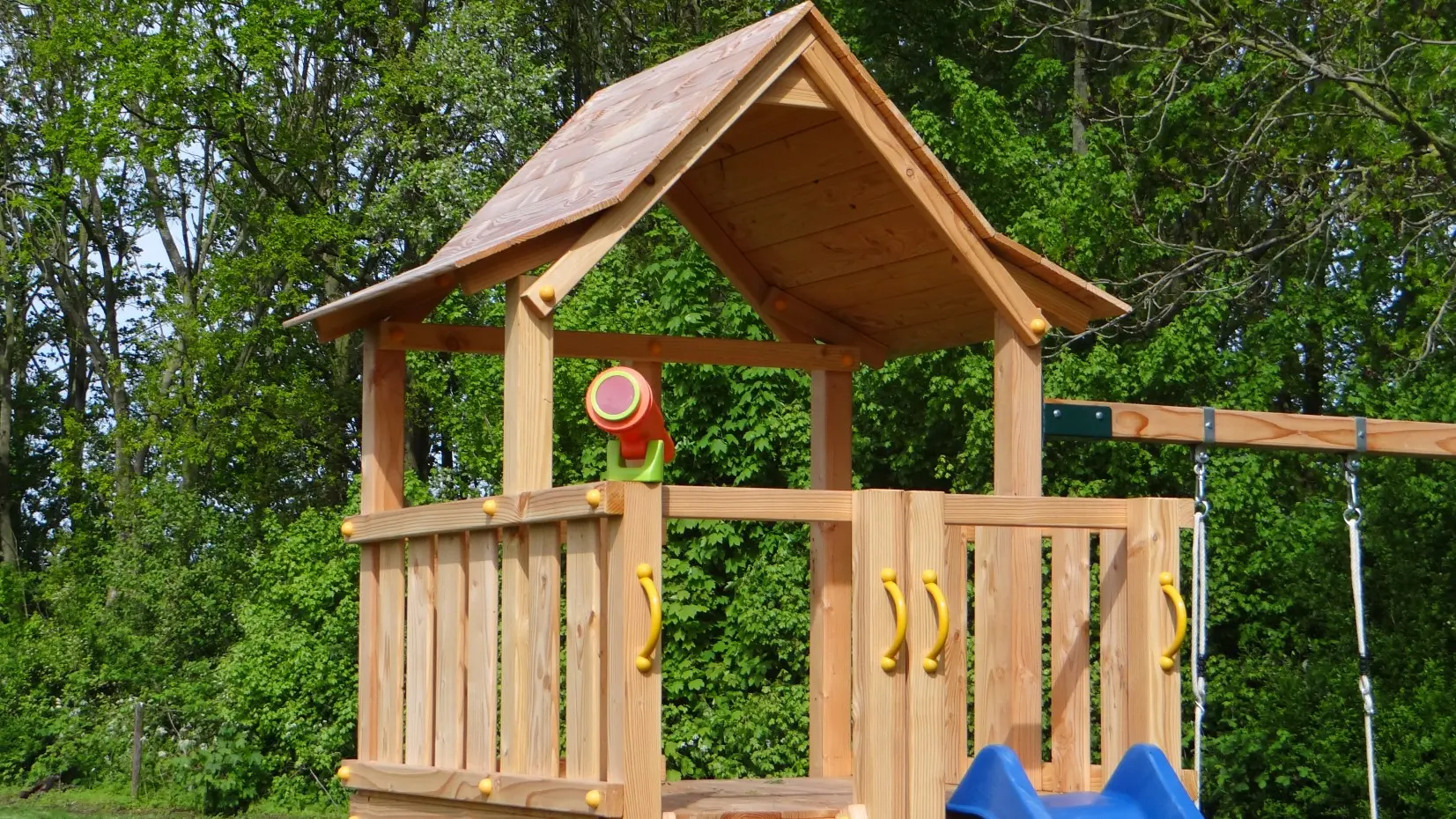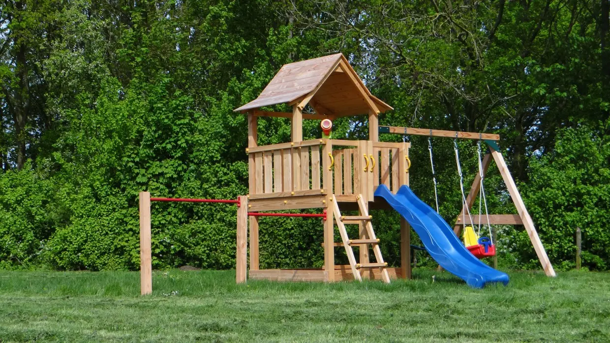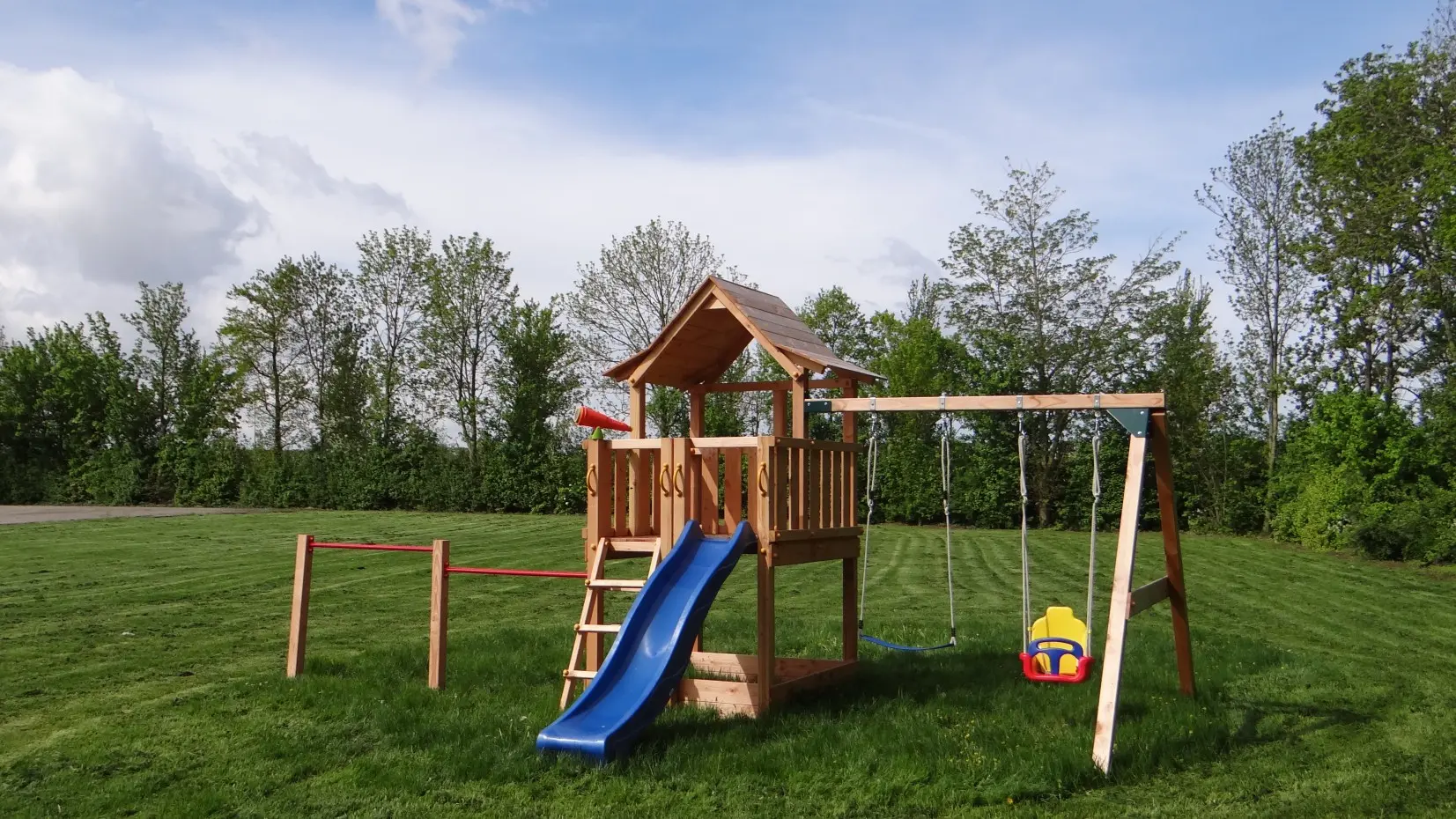 The Pagoda playset is an excellent choice for outdoor fun! This versatile playset from Blue Rabbit, made of high-quality Douglas wood, offers hours of enjoyment for adventurous children. With a platform at 120 cm, a slide, double swing Succes, and two monkey bars of 125 cm, it has everything children need for lots of fun.