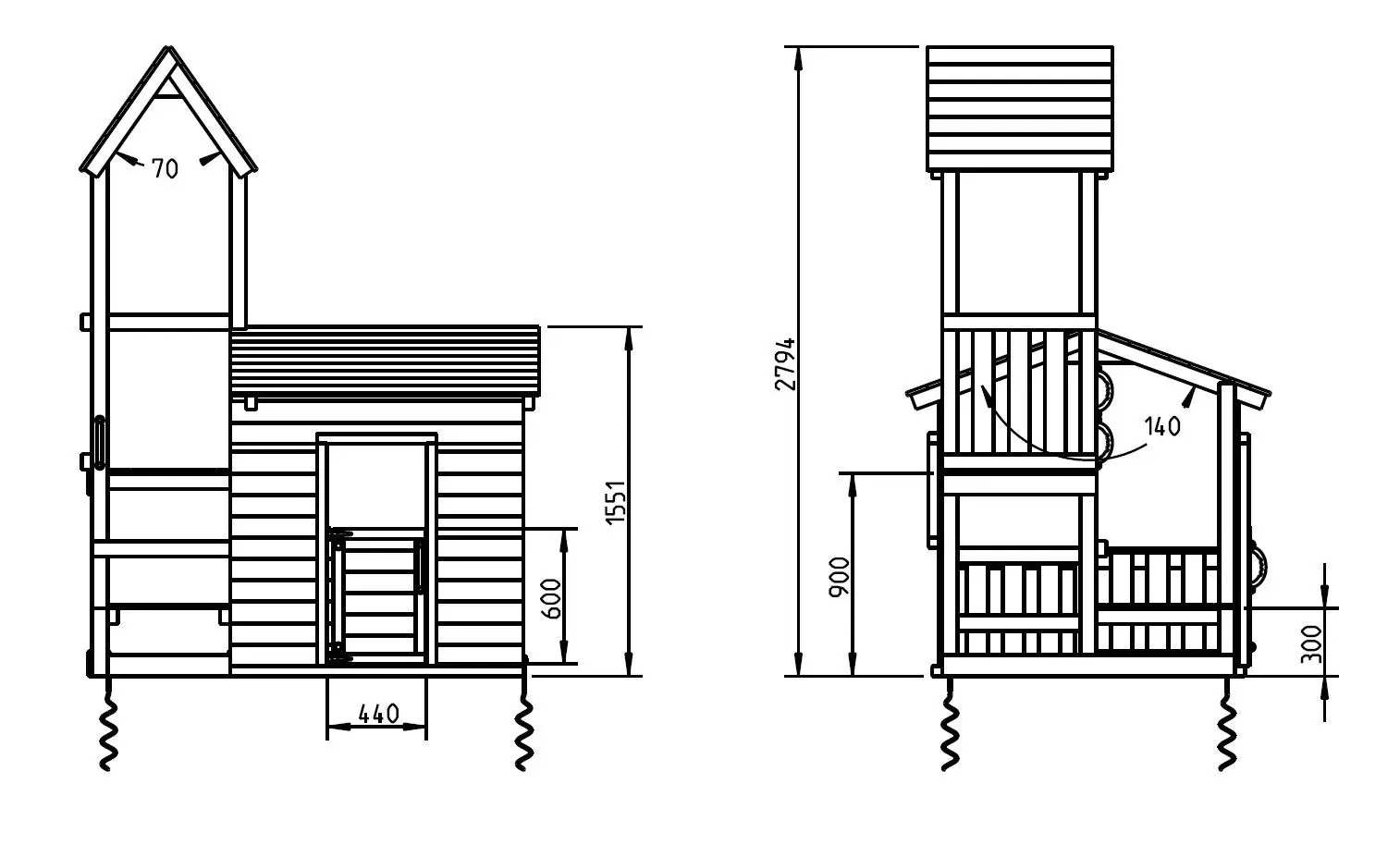 • The best quality northern European spruce wood. The wood is pressure-impregnated, giving it durability class C.