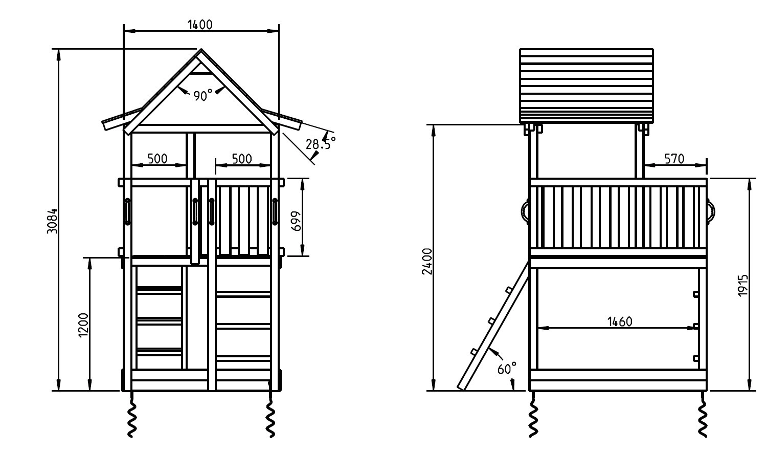 Ground dimensions playtower 140x160cm