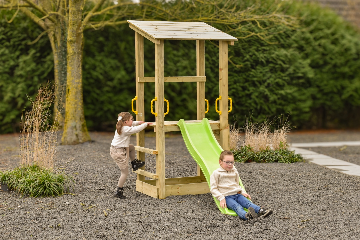 The sturdy handholds make climbing to the platform easier and safer. Whether it’s a secret treehouse, a pirate ship, or a lookout post – Plan 90 sparks imagination and encourages active outdoor play. Perfect for children who love to explore, climb, and slide!