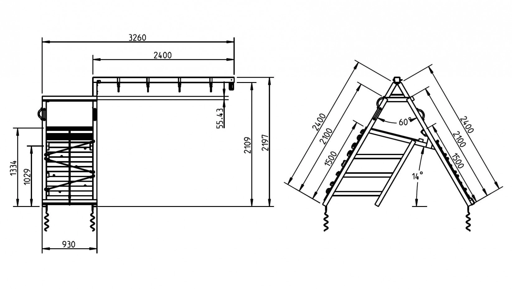 • Includes 4 spiral ground anchors and swing hooks