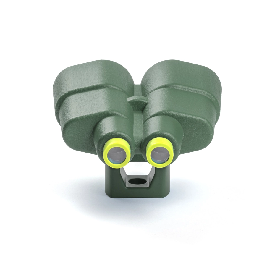 Binoculars XXL dark green/lime green, designed for mounting on a climbing frame or play tower. This large binocular is available in various colors. The large, dark green binocular sparks children's imagination. Hey, want to join in wild exploring? Watch out, do you see that wolf?!