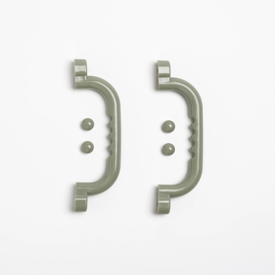 Sturdy hand grips in Pastel green. Perfect for a climbing tower or play tower. The hand grips are available in various colors and are a practical addition to any playset. They provide children with an extra sense of safety while playing.