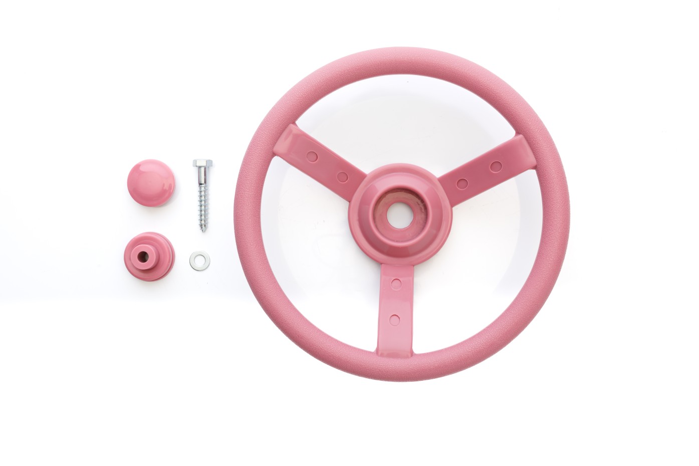 The pastel pink steering wheel is a fantastic accessory for any play set. With the pastel pink steering wheel, children can feel like real captains or drivers while playing. The pastel pink steering wheel comes complete with mounting hardware.