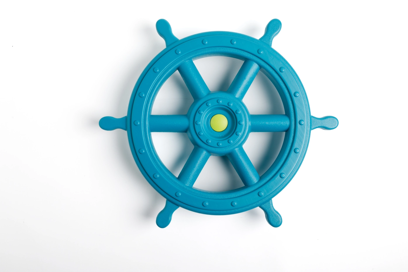 A large XXL steering wheel in turquoise/lime green. Size Ø54 cm. Feel like a real pirate with this mega toy wheel. The pirate wheel is a fun addition to any play equipment. It comes with mounting materials and is very easy to install.