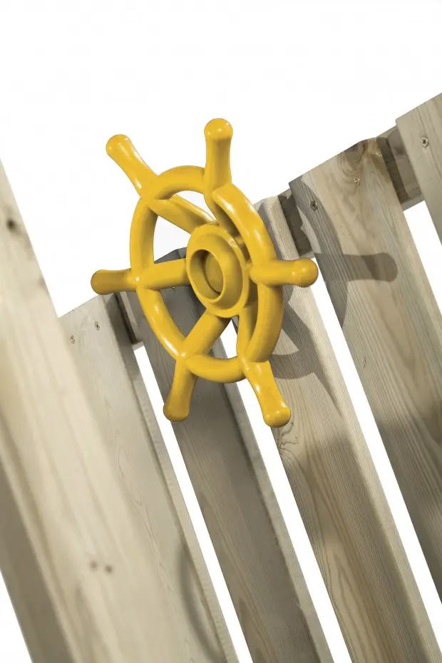 Steering wheel (boat) for attaching to playground equipment. With this steering wheel, the playground becomes even more versatile and exciting! It increases the fantasy of every child. Step aboard the new ship. Hoist the sails, full speed ahead!