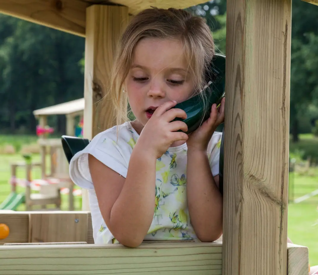 This green phone is a fun accessory for the playset! Pressing the buttons produces a real ringing sound. The phone comes with mounting hardware and is easy to install.