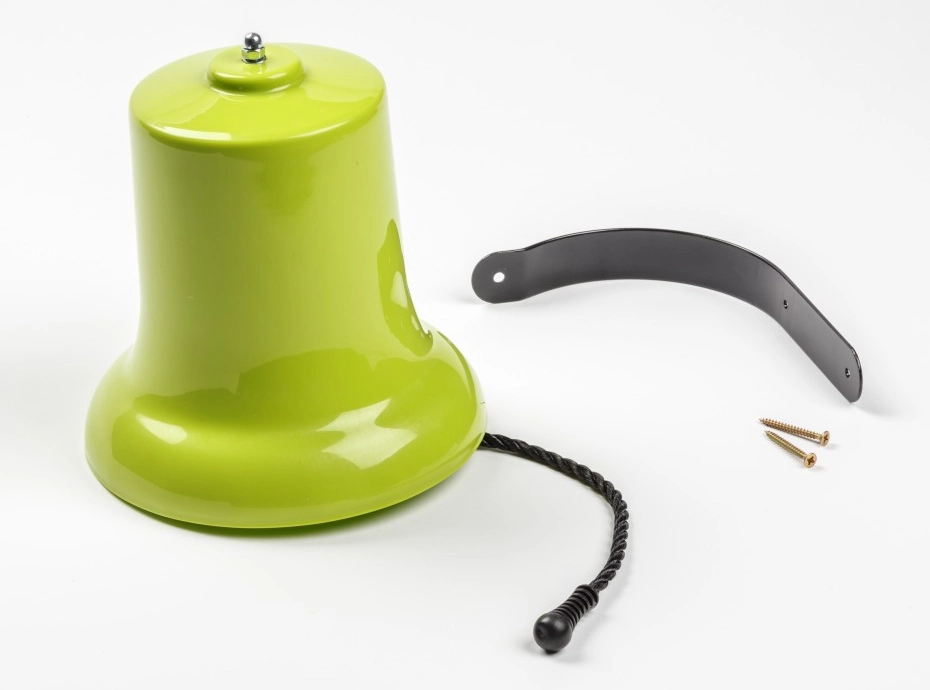 This lime green toy bell is a fantastic addition to any playset or playhouse! It produces a real ringing sound when pulled, but the volume is limited to avoid disturbing the surroundings. Made of sturdy material and easy to install, it encourages imaginative play and provides endless fun. Perfect for little adventurers looking to combine creativity and play!