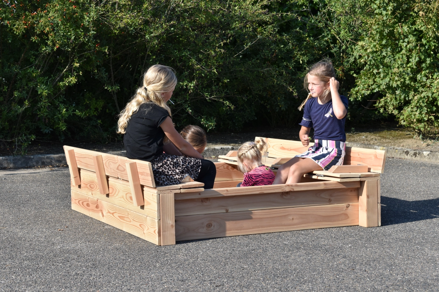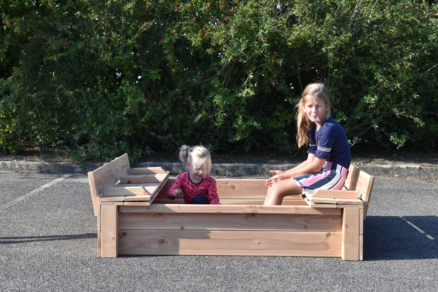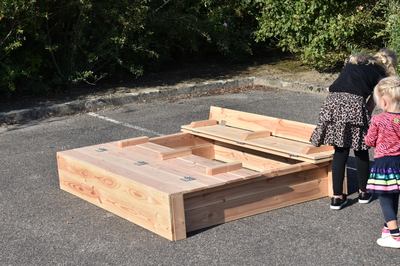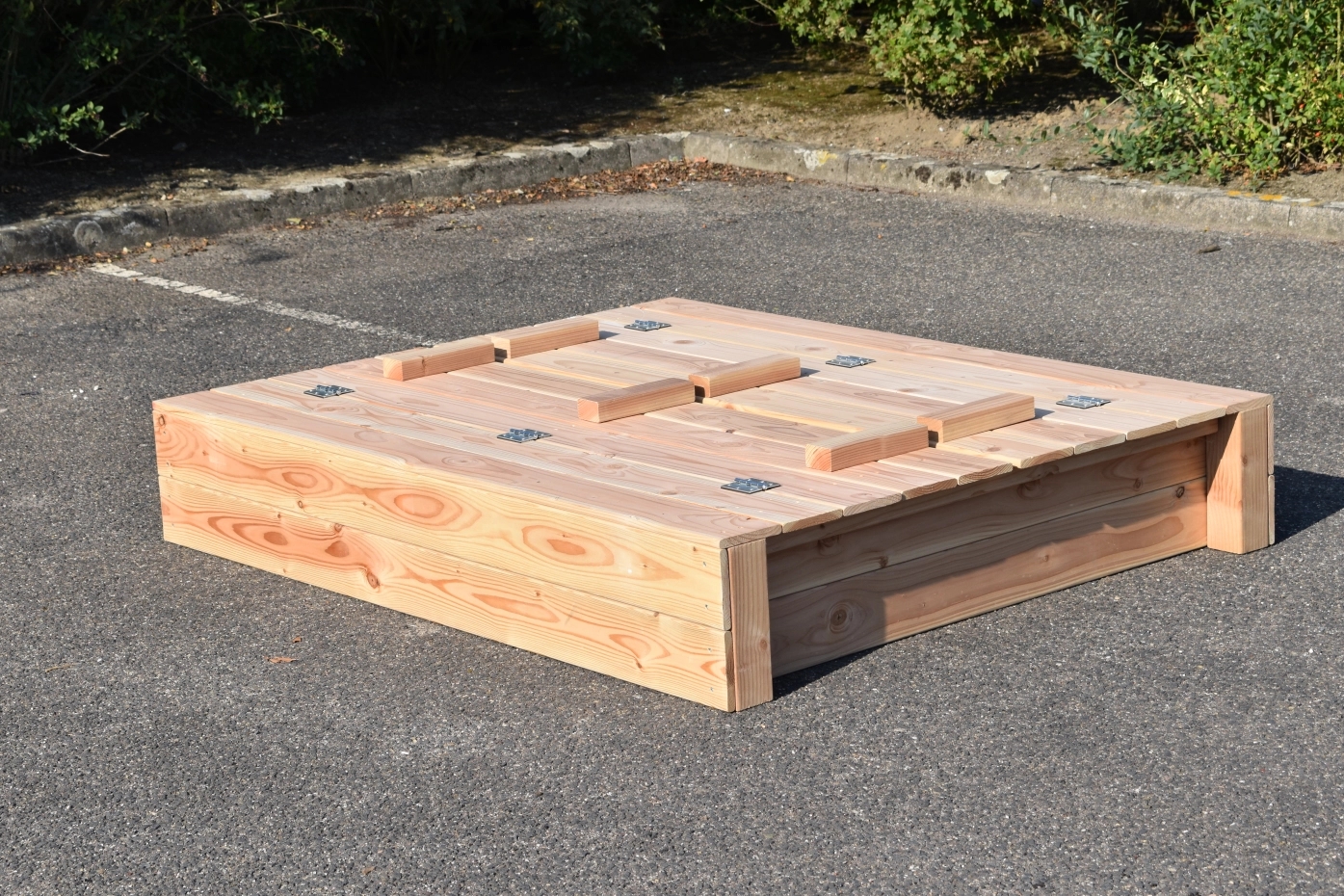 - Because the lid protrudes a little at the sides, you don't have to get your fingers between the wood to open and close the sandbox