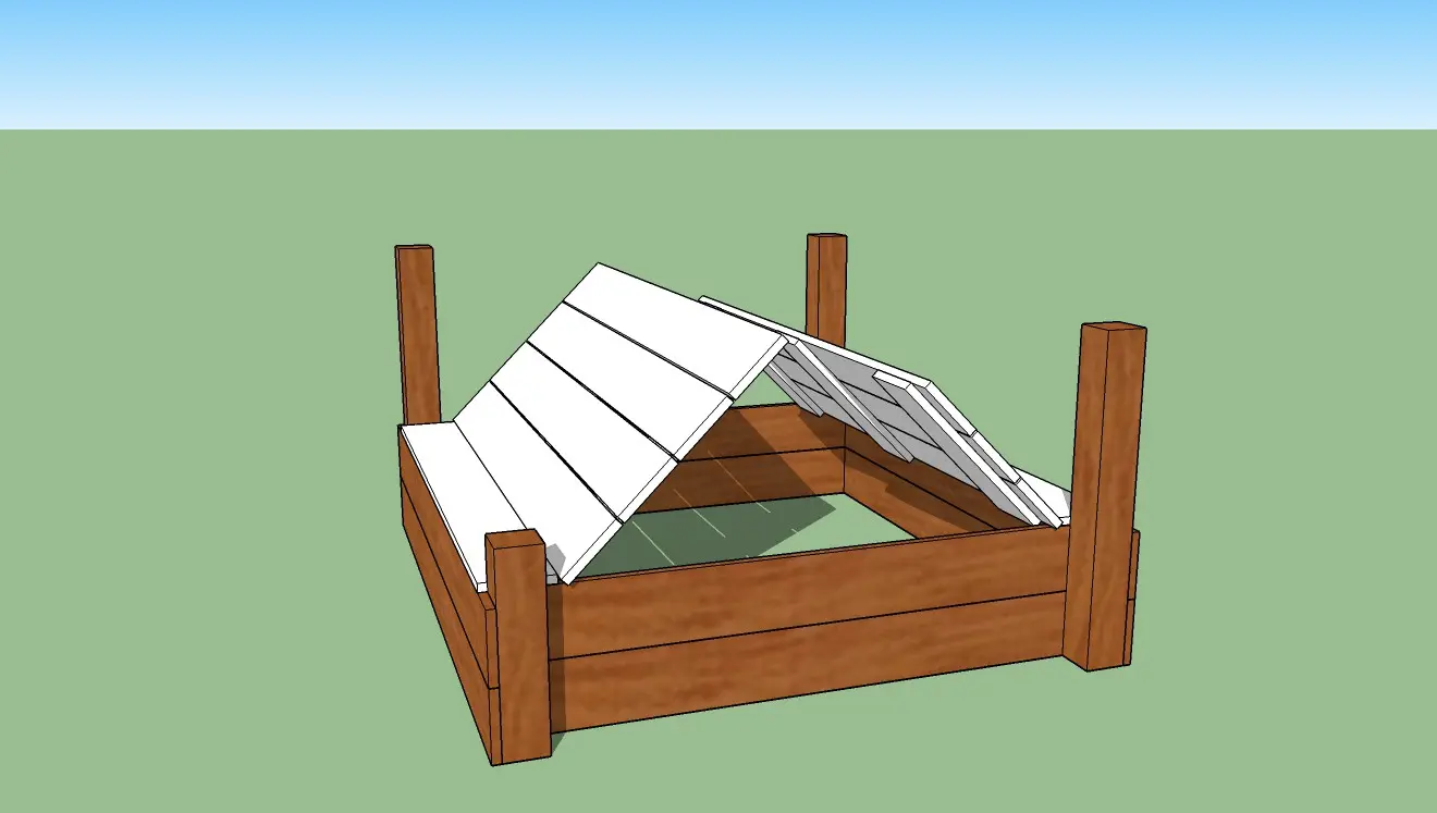 Sandbox lid for the Blue Rabbit play tower Beach Hut. This protects the sand in the sandbox from pests, cats, and dirt. The delivered sandbox components are shown in white.