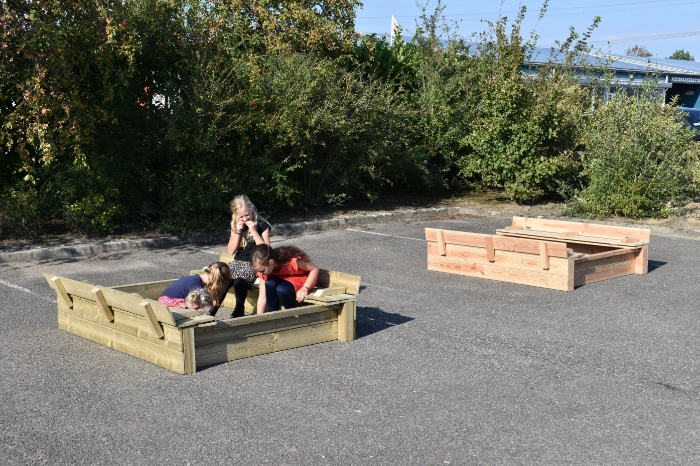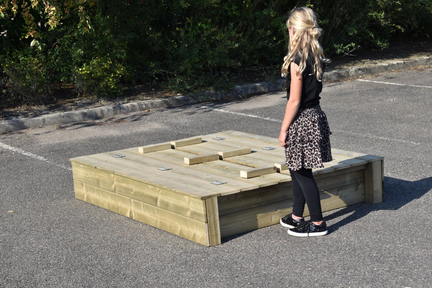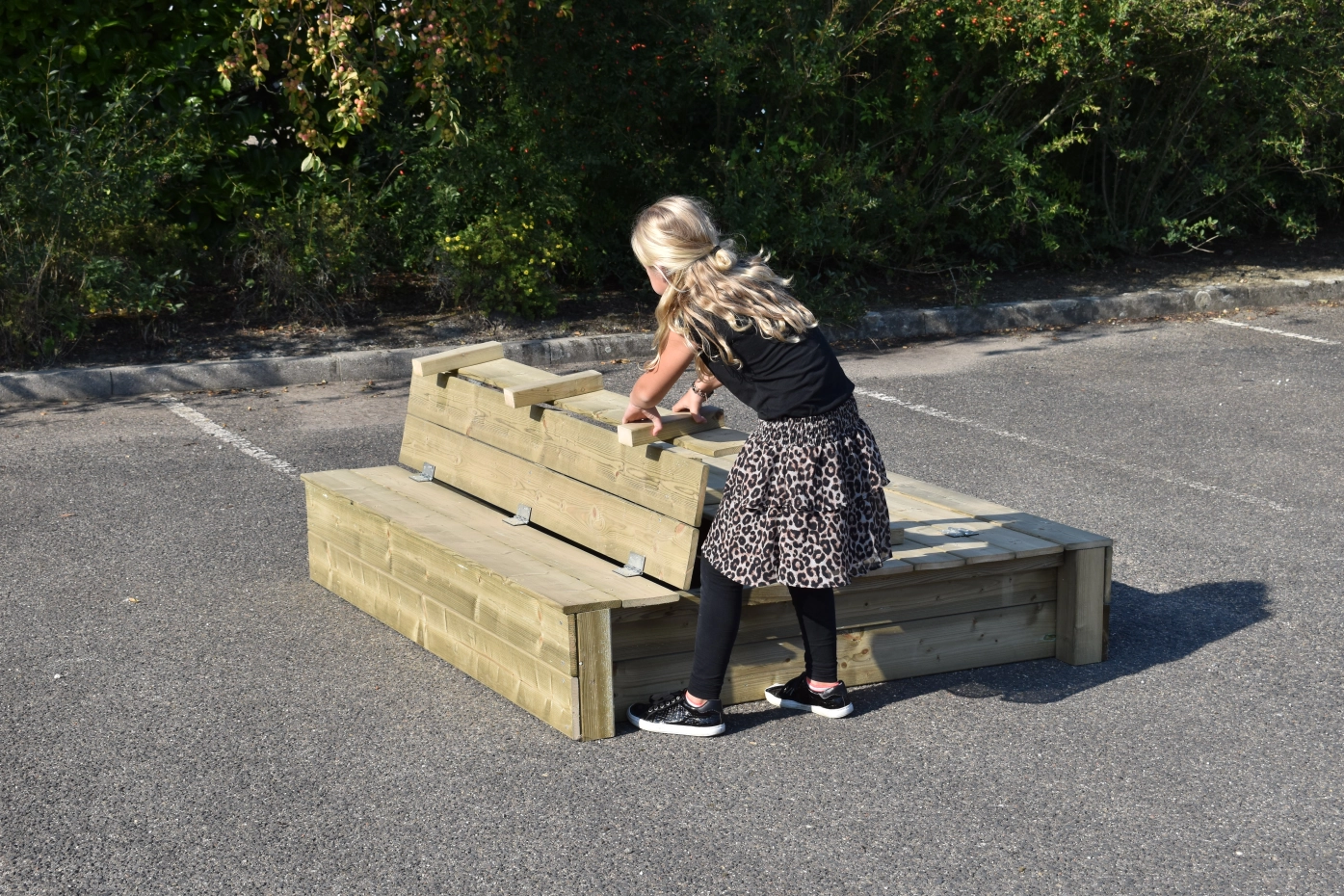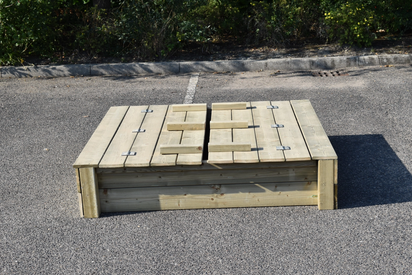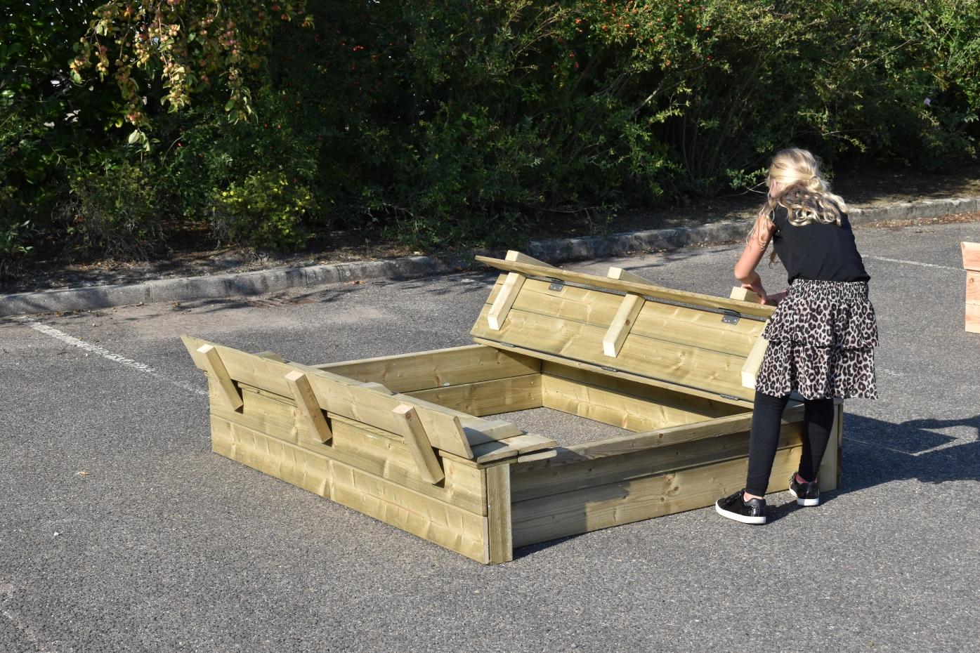 - Because the lid protrudes a little at the sides, you don't have to get your fingers between the wood to open and close the sandbox