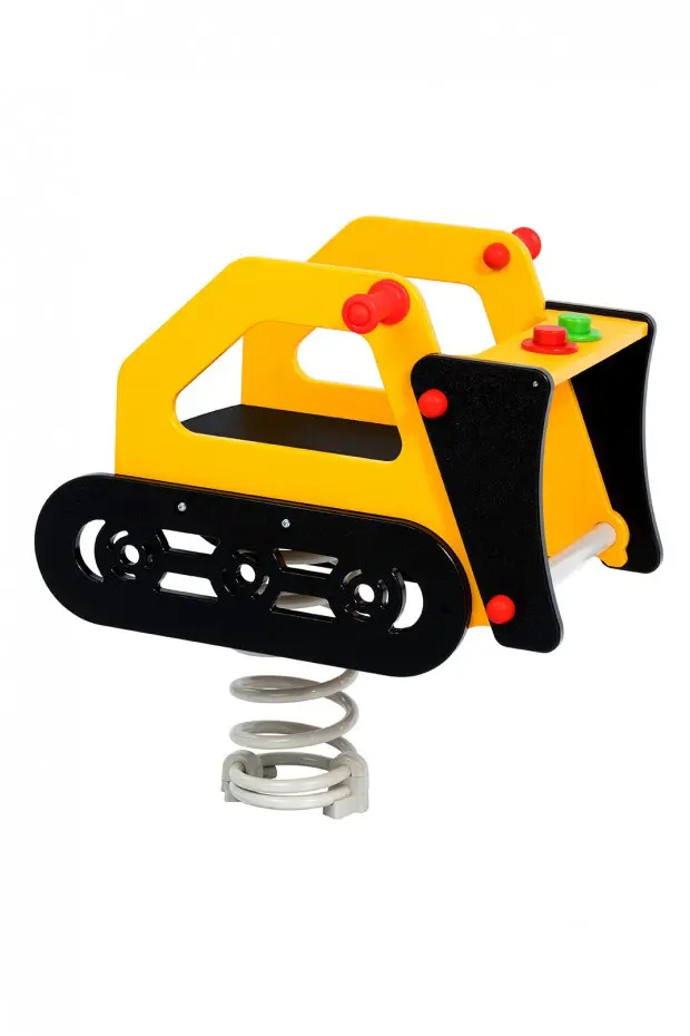 The spring rider bulldozer with trailer is a cool, robust and vandalism proof spring rider for playgrounds. Even more fun will be experienced! Available with a footplate or concrete anchor as construction. Will be delivered with connection tube.