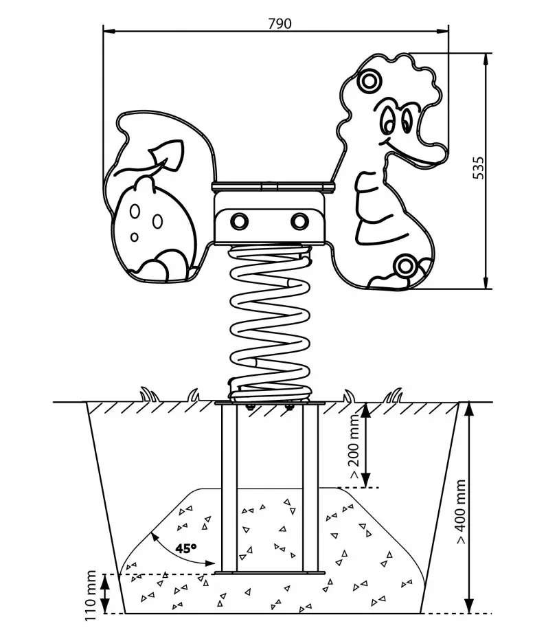 Spring rider Dragon is a beautiful and robust spring rider for playgrounds. Even more fun will be experienced by children with the Dragon spring rider!