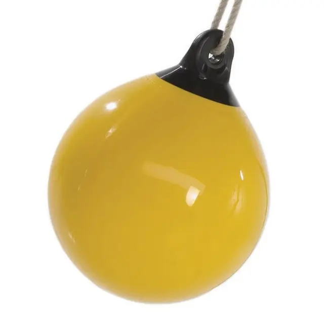 The swing buoy "Drop" is a fun outdoor toy for the garden. The "Drop" buoy swing can easily be attached to a playset. Hang it low to use as a kickball, high to use as a punching ball, or at regular height to use as a swing.