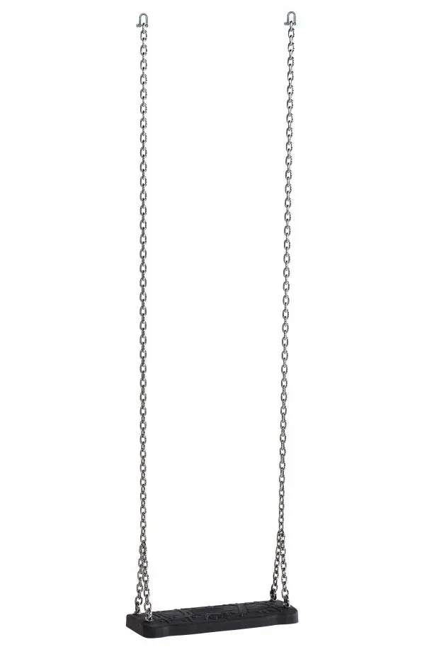 The swing seat Curve is a sturdy seat made of black rubber with an aluminum insert plate. The swing seat is suitable for both children and adults. Maximum weight capacity is 100kg. Suspended with stainless steel chains for professional swinging fun.