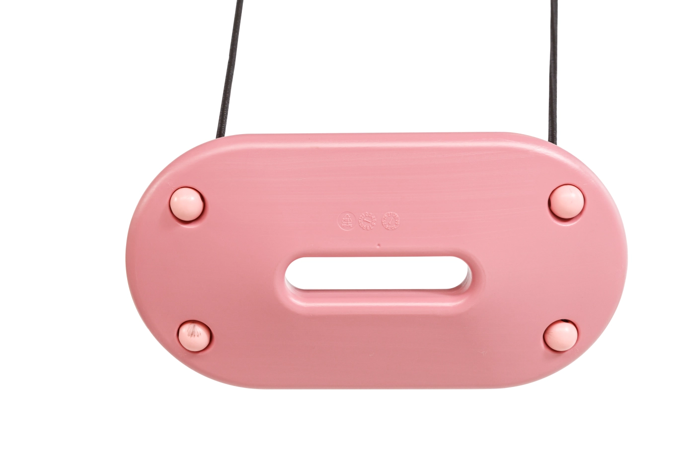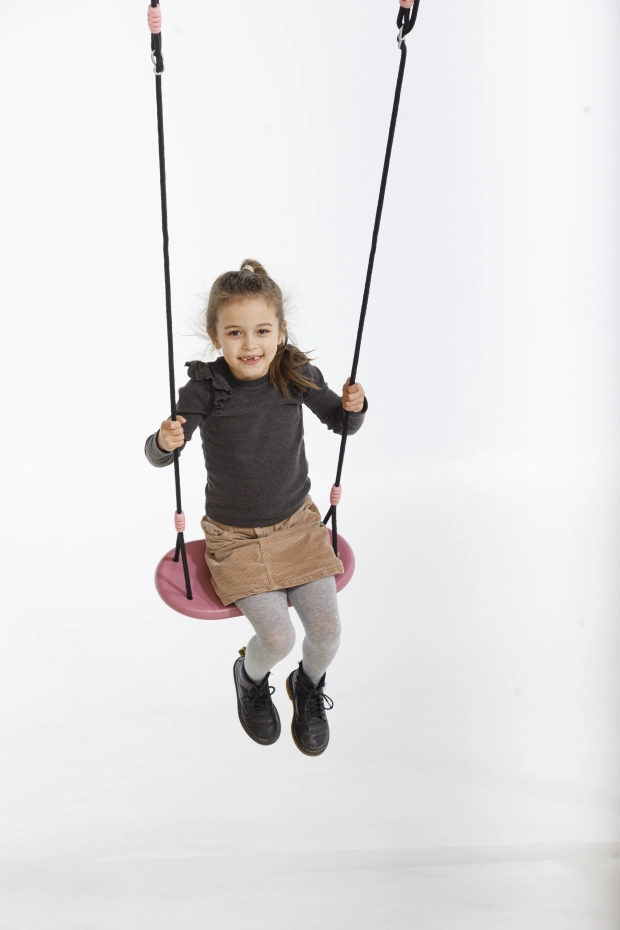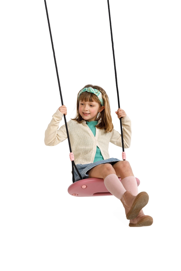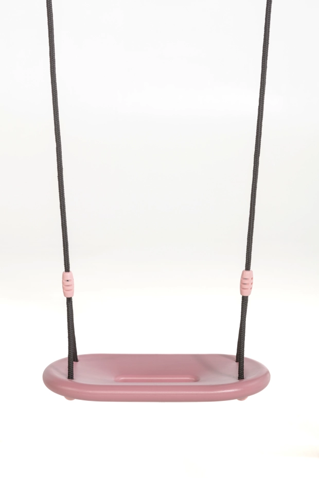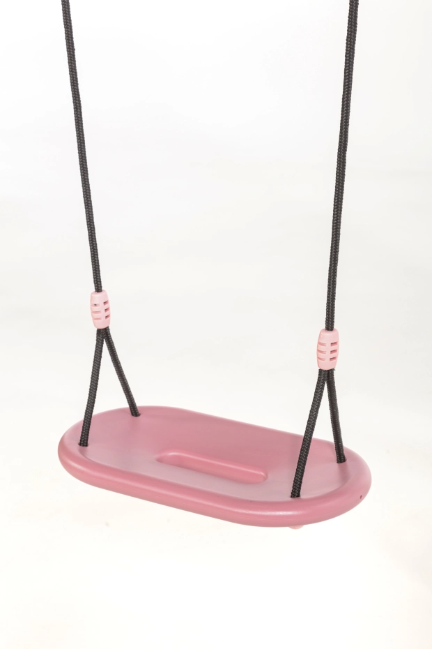 XXL swing seat, ergonomically shaped, in soft pastel tones pink/light pink. This comfortable and safe swing seat is made from sturdy blown HDPE plastic and measures 45 x 24 x 3.5 cm. The swing seat comes with 10 mm thick black braided rope that is gentle on the fingers. Height adjustable, suitable for swings up to 250 cm. The perfect seat for endless swinging fun!