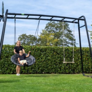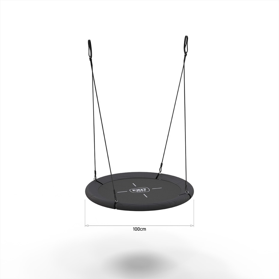 The EXIT nest swing is a spacious family swing with a diameter of 100 cm. Suitable for one or two children and easy to adjust in height. The strong metal frame is covered with durable, weather-resistant materials. Perfect for playing, moving, or relaxing. Fits most swing sets thanks to its universal suspension hooks and is compatible with EXIT GetSet and EXIT Ivy swings for extra flexibility and safety.