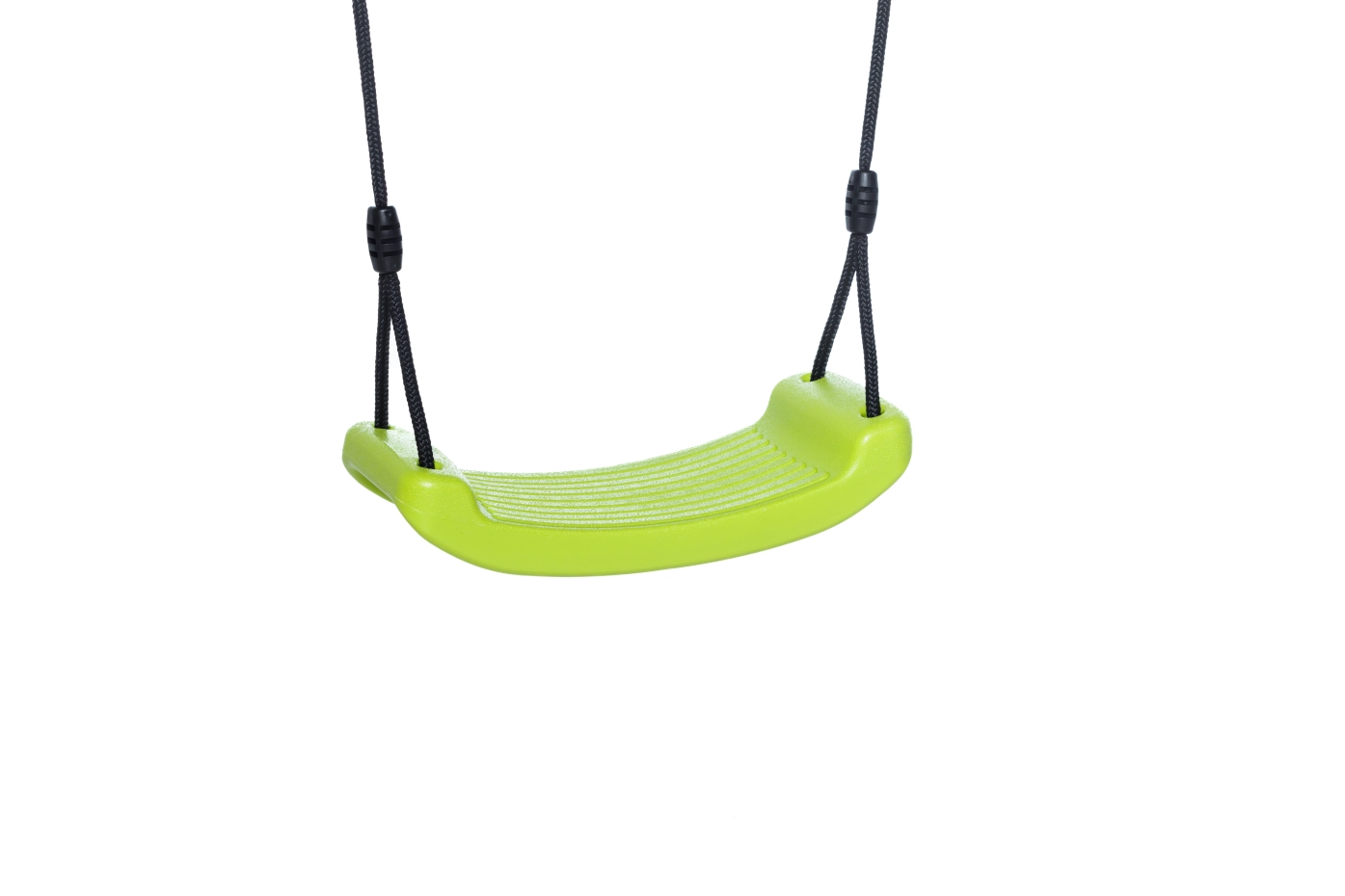 Plastic swing seat in the fresh colour lime green. The swing seat has an overall width of 420mm, the depth is about 170mm. The swing rope is adjustable and made of BR rope, so it does not burn your fingers. The swing seat is suitable for swings with a height between approx. 190cm to 240cm (bottom of swing beam).