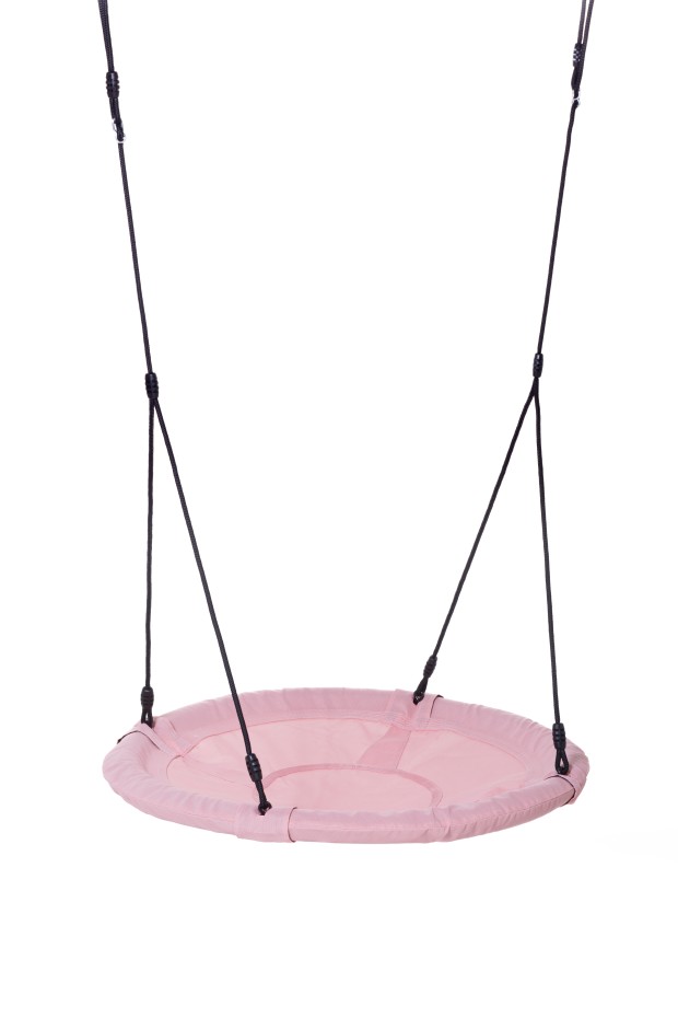 The Rondice pastel pink nest swing is a stylish and comfortable hanging seat that offers hours of outdoor fun. This nest swing is made from water-repellent fabric and features strong braided ropes with durable BR plastic joints in a matching colour. Its sturdy construction allows several children to enjoy a safe and relaxing swinging experience together.