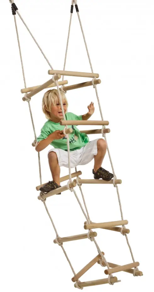 Challenging rope ladder, climbable on 4 sides! Note, this unique rope ladder is made of PH rope and hardwood rungs. This 4-sided rope ladder is over 2 meters long, suitable for a swing or playset. Need a rope ladder? This is the ultimate climbing rope for kids! Climbing, scrambling, swinging, and swaying on a 4-sided climbing rope brings maximum climbing fun.