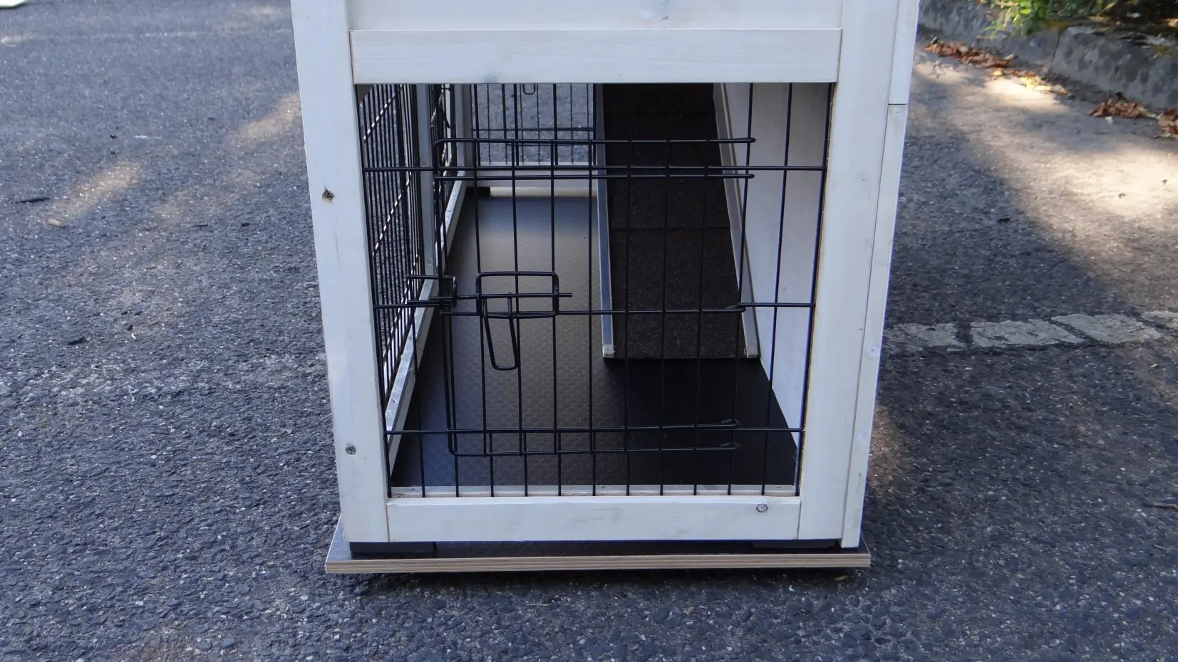 Base plate for additional run Joas. This floor provides a more comfortable feeling than cold pavement or floor. Furthermore, this plate is very suitable as a ground for setting up the rabbit hutch inside. (It is a flat plate, the urine can run off and can cause damage to the floor.) The base plate is easy to clean and has a dimension of 86x61cm. Used material: plywood film-coated 15mm and non-slip rubber feet.
