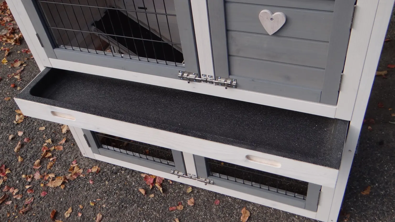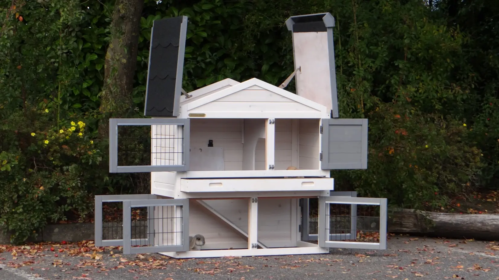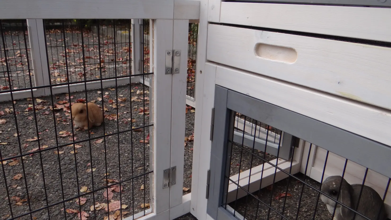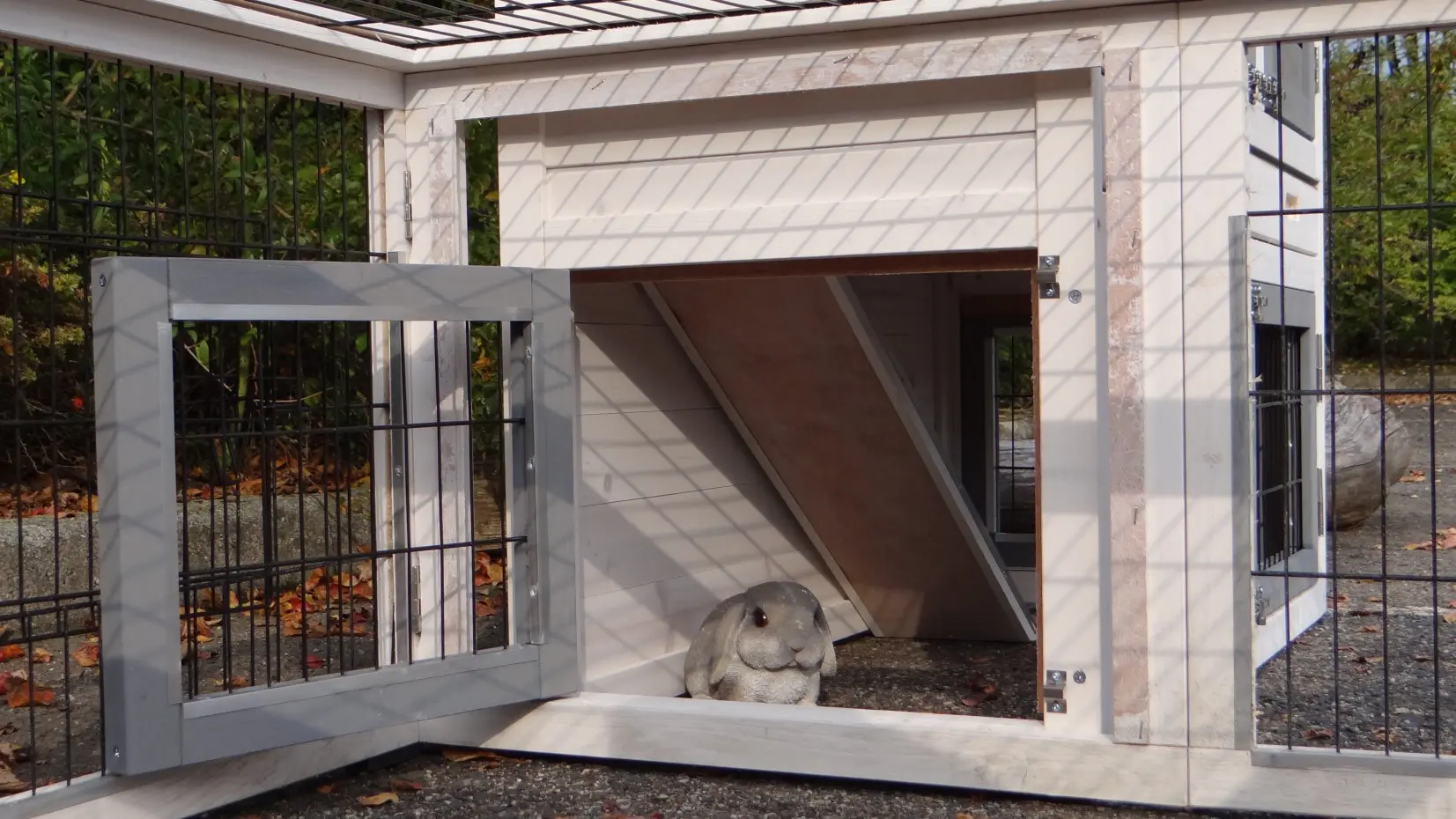 - The doors of this rabbit hutch are equiped with double locks