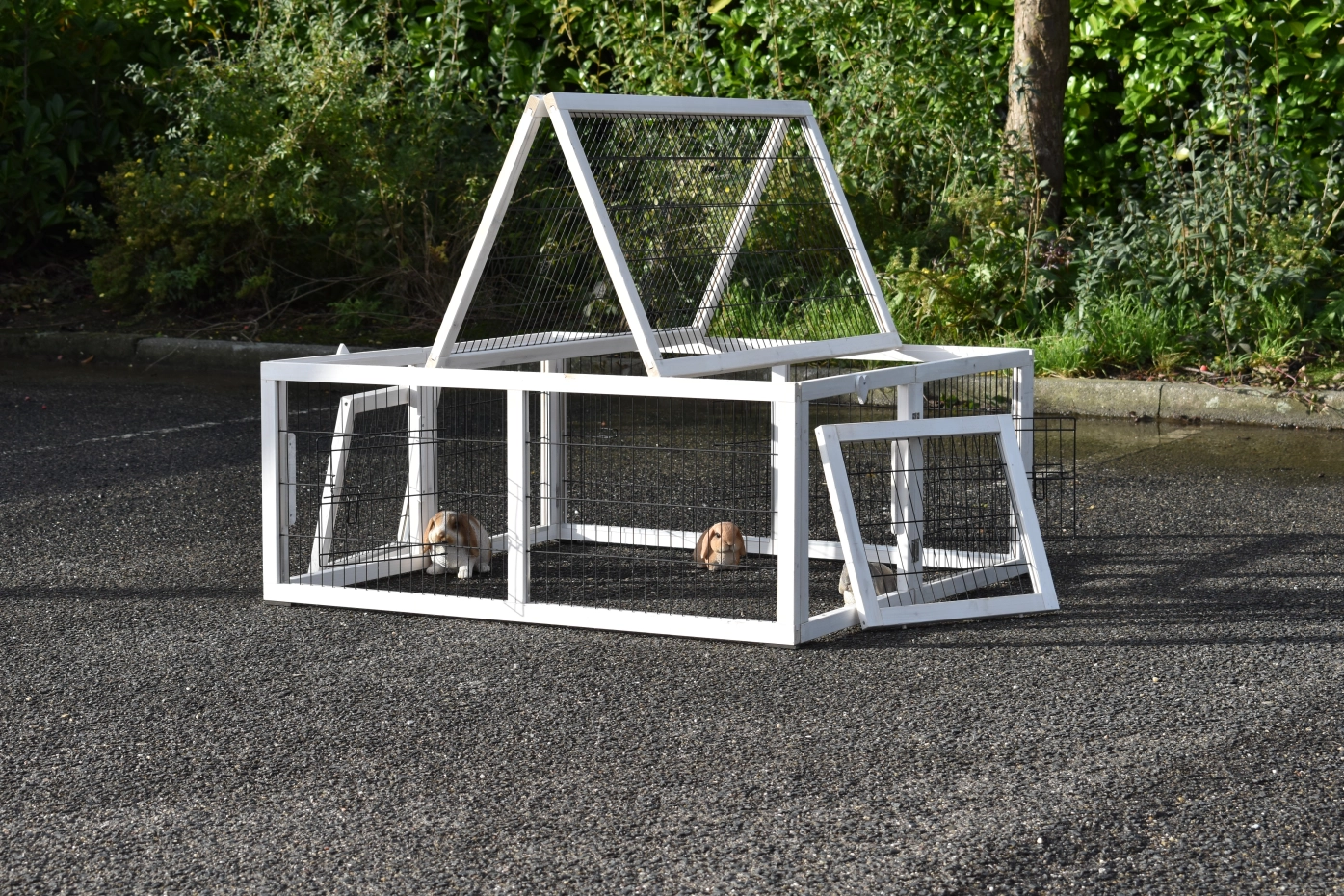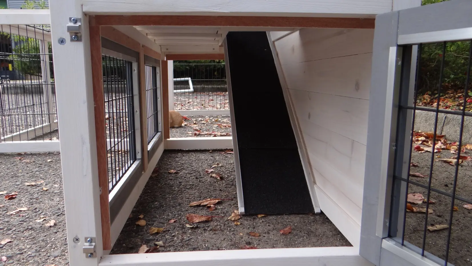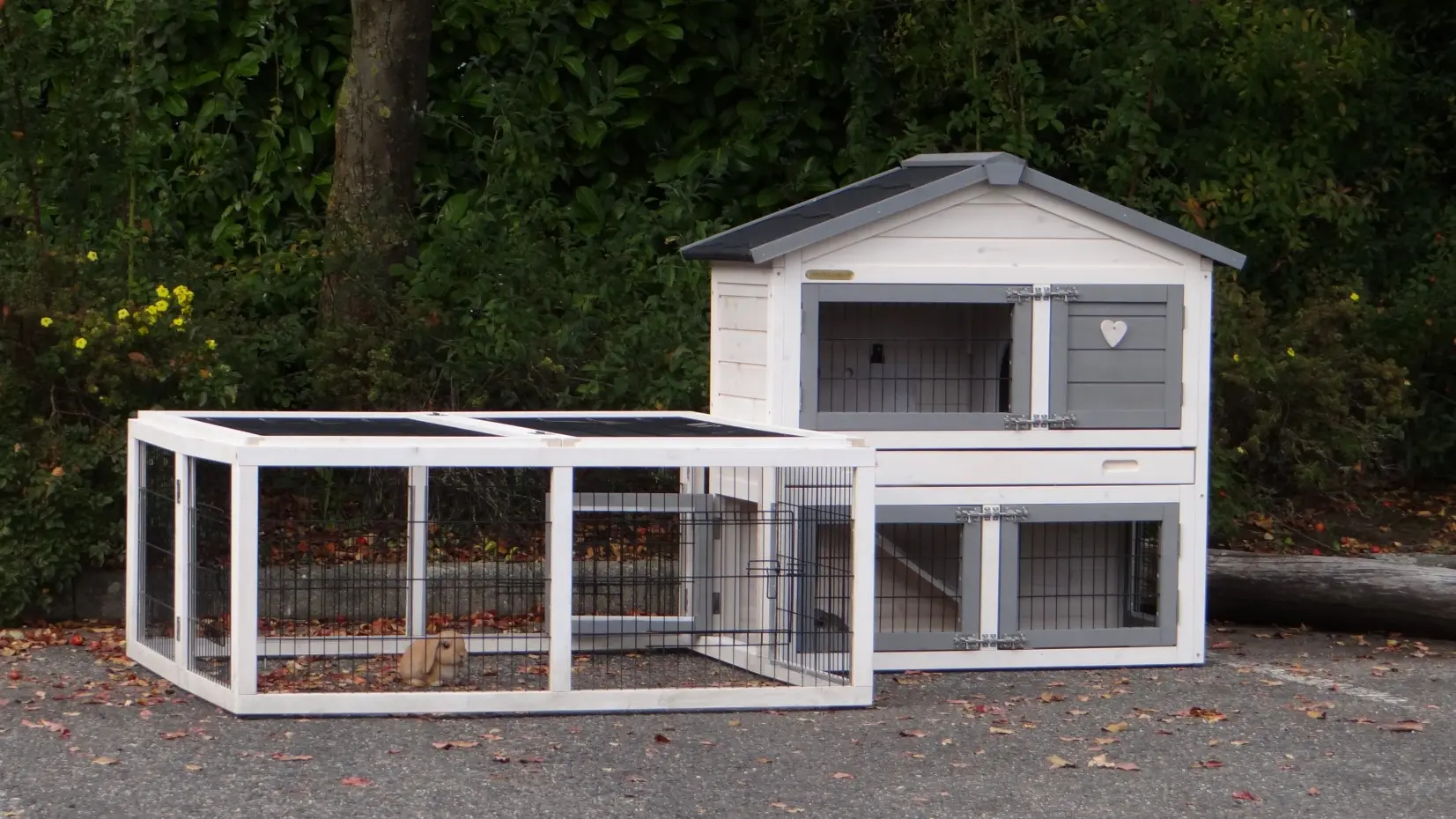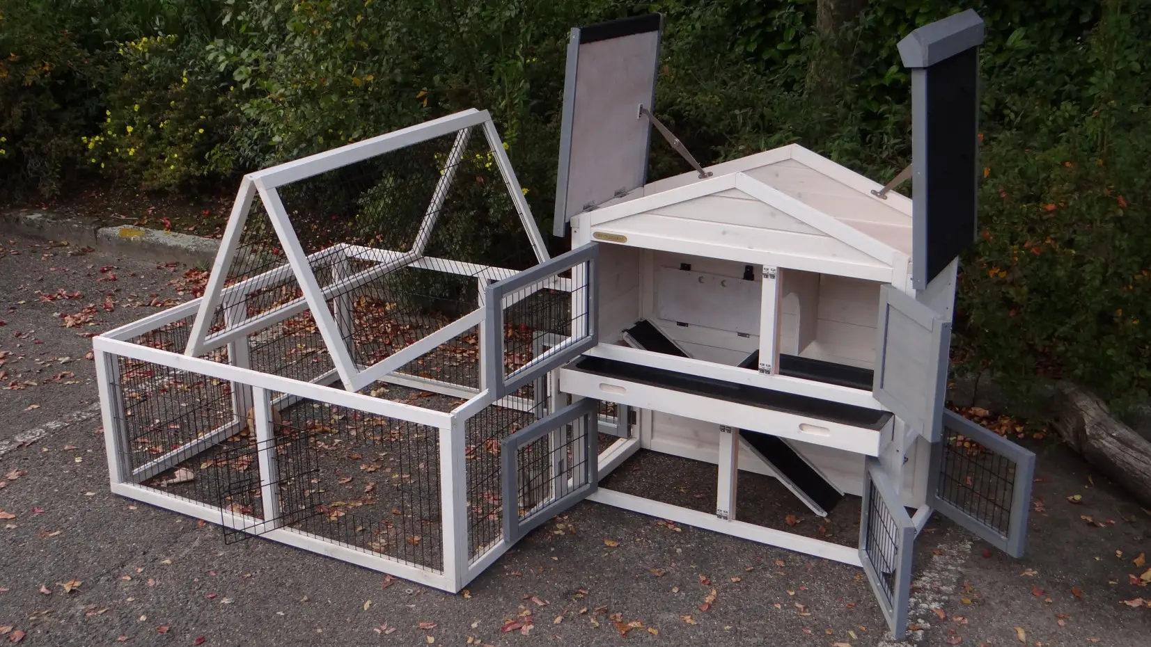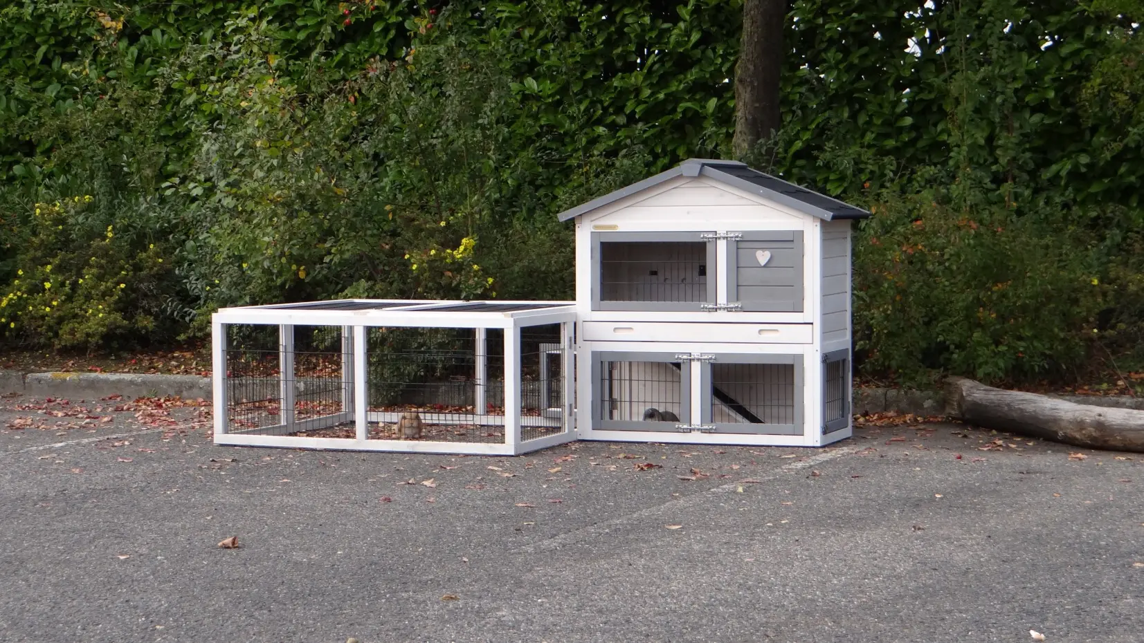- The doors of this rabbit hutch are equiped with double locks