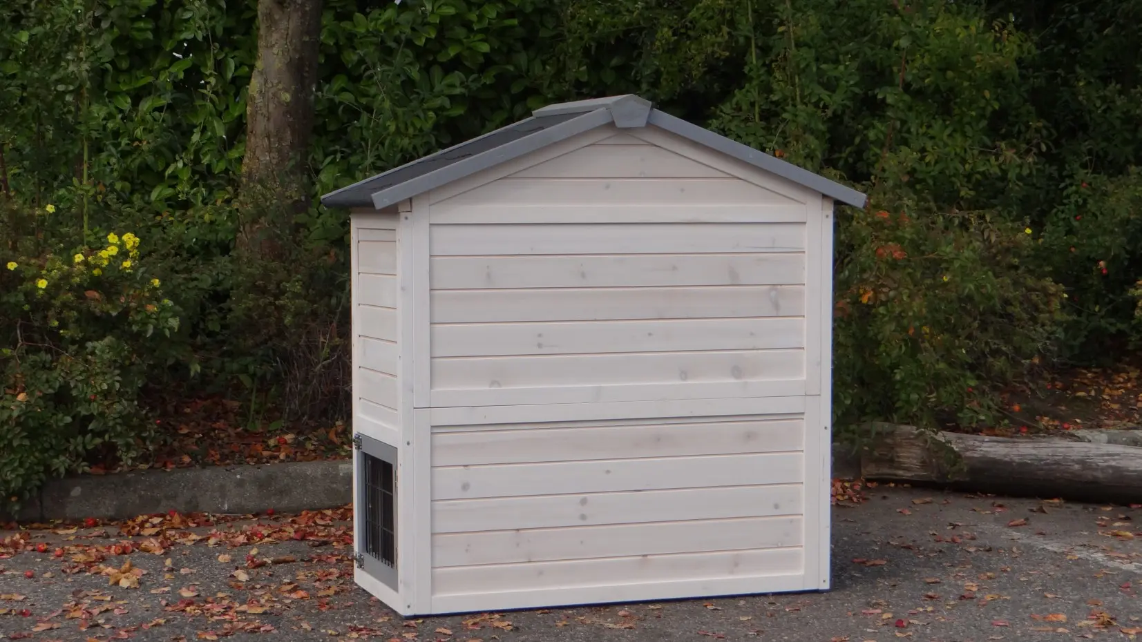 The wood, used for your pet house is a unique natural product which has been processed according to traditional methods in the country of origin, after careful selection. It is characteristic and unique in every way. This wood product has been manually processed. No single piece of wood is the same in shape, structure or color, so color shades are inevitable even within one piece of wood. Wind cracks, imperfections and the presence of large and small knots testify to their origin and years of growth. Bumps are usually manually updated with wood fill. Through use and through the influence of light, new pet houses will finally get a warmer color. Color differences in comparison with the show model or even among themselves are therefore usual. The pet house is stained in the colors as in the picture. You should do it once again to prevent mold and rot. You can easily order the stain together with the pet house.