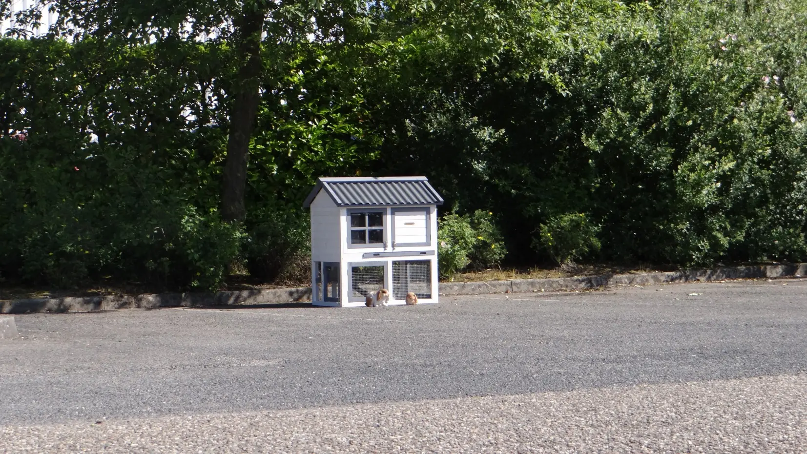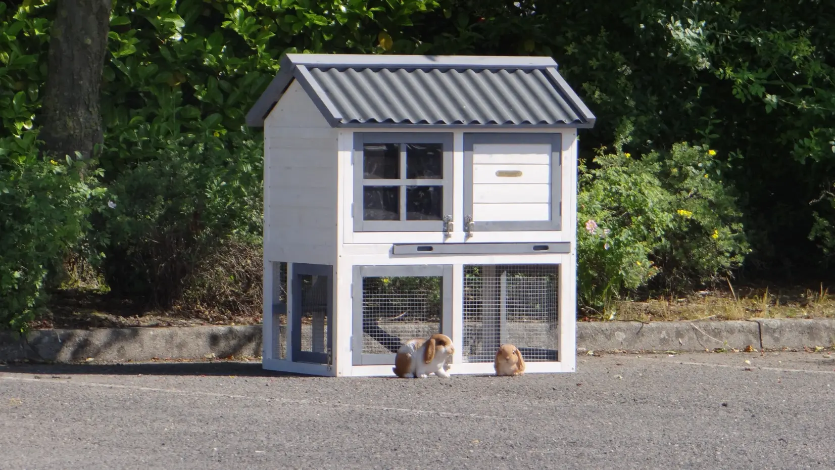 The rabbit hutch Nice is an acquisition for your garden! The little rabbit hutch has a very practical design. There are many doors and the hutch has a removable plastic tray. We will advise to buy some aluminium chewprotection strips. The maximal dimensions of the hutch are 98x64x101cm.
