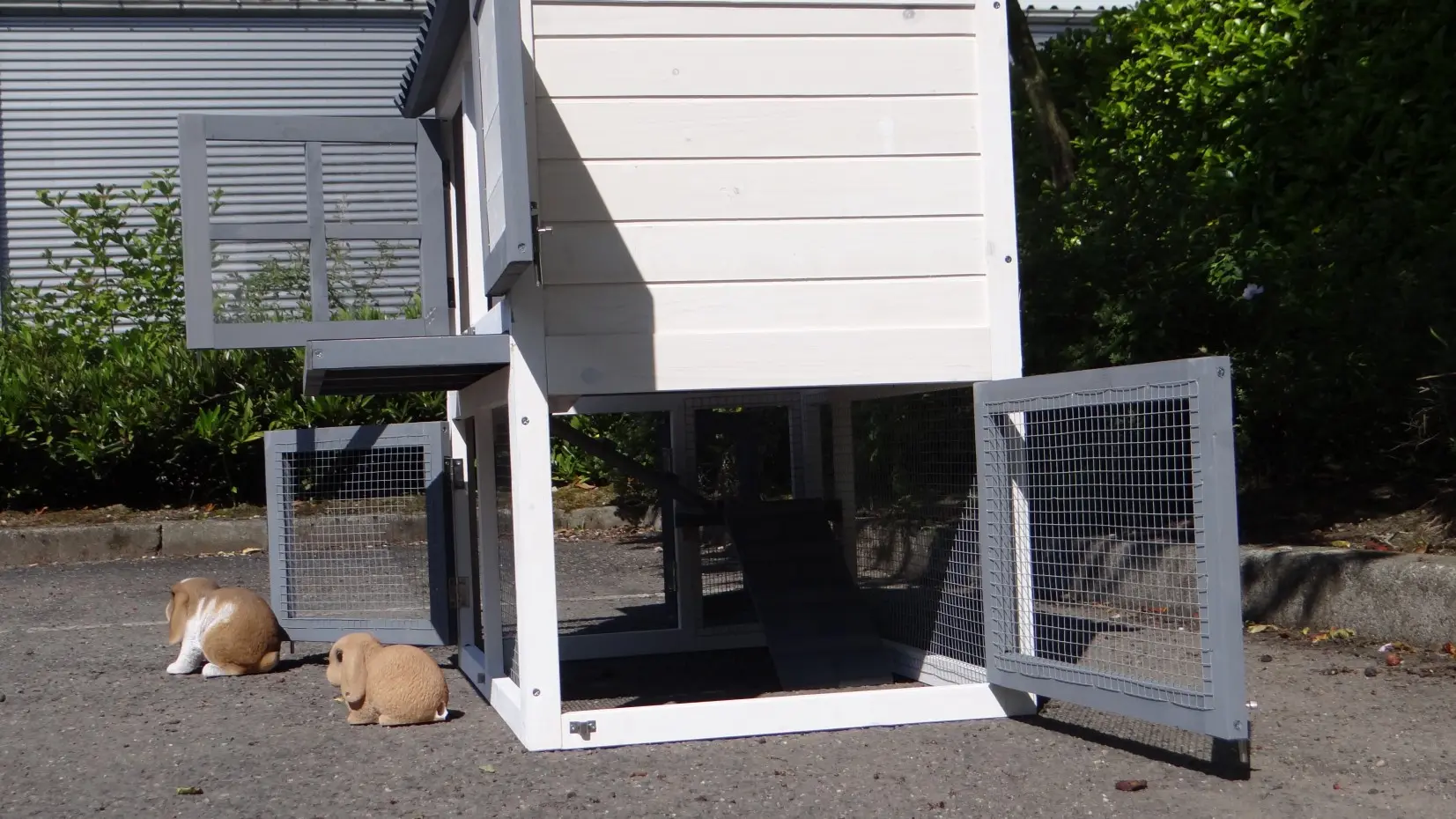 It is advisable to treat the hinges and locks periodically with silicone spray or lock spray to prevent rust and corrosion. If the pet house is not in a covered place, we advise you to anchor the house.
