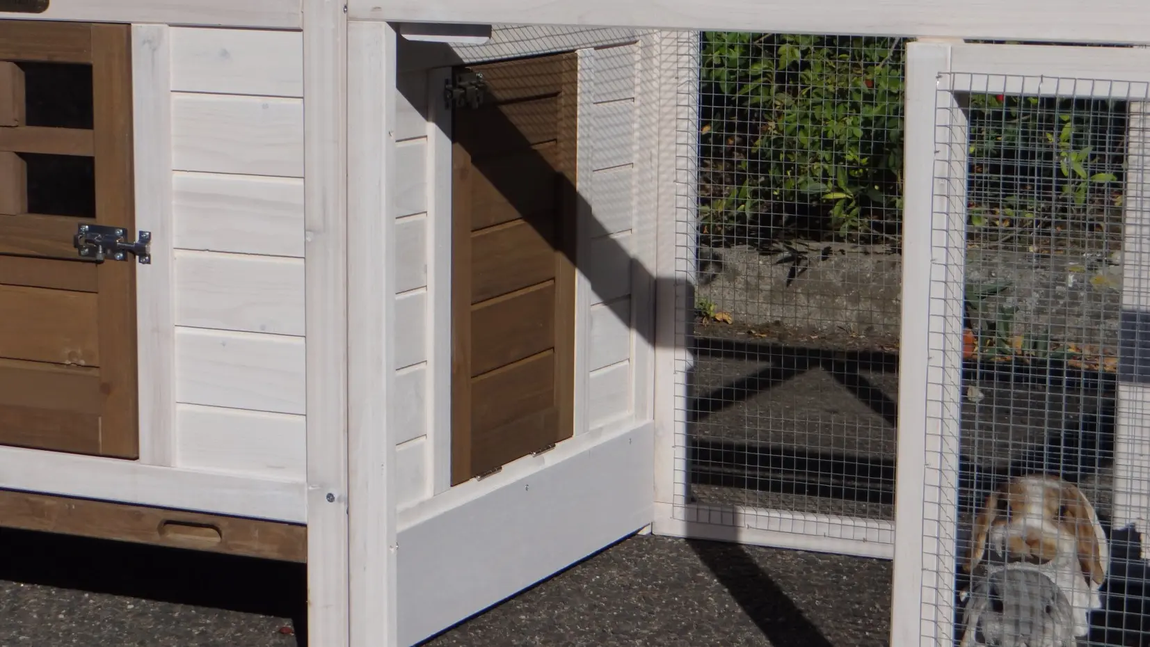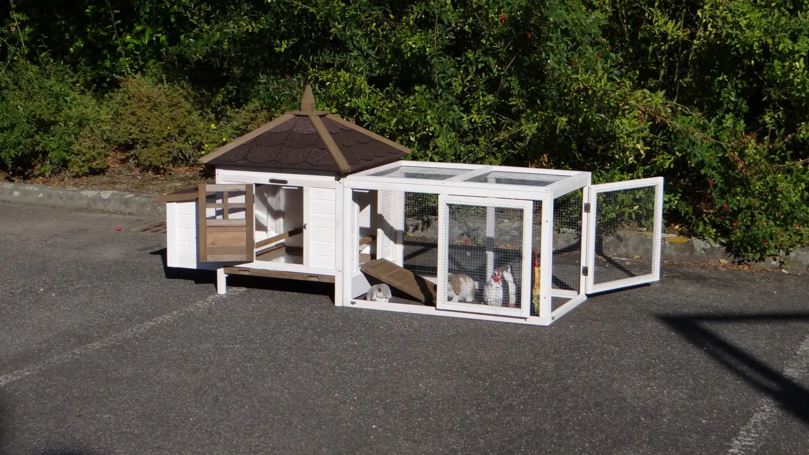 - The roof of this rabbit hutch is equipped with roofing felt