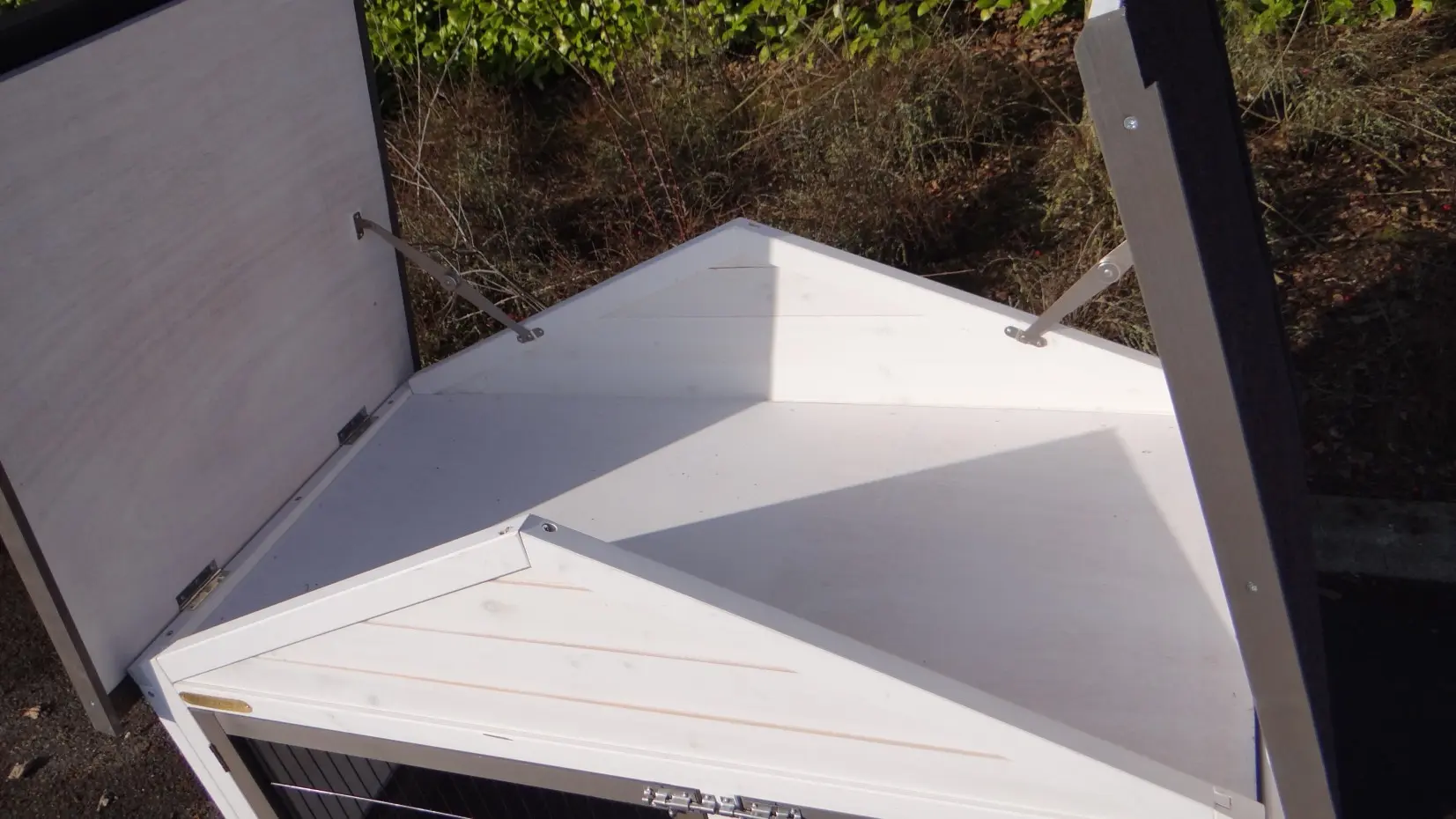It is advisable to treat the hinges and locks periodically with silicone spray or lock spray to prevent rust and corrosion. If the pet house is not in a covered place, we advise you to anchor the house.
