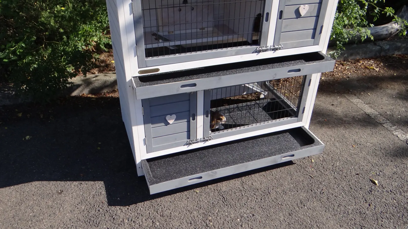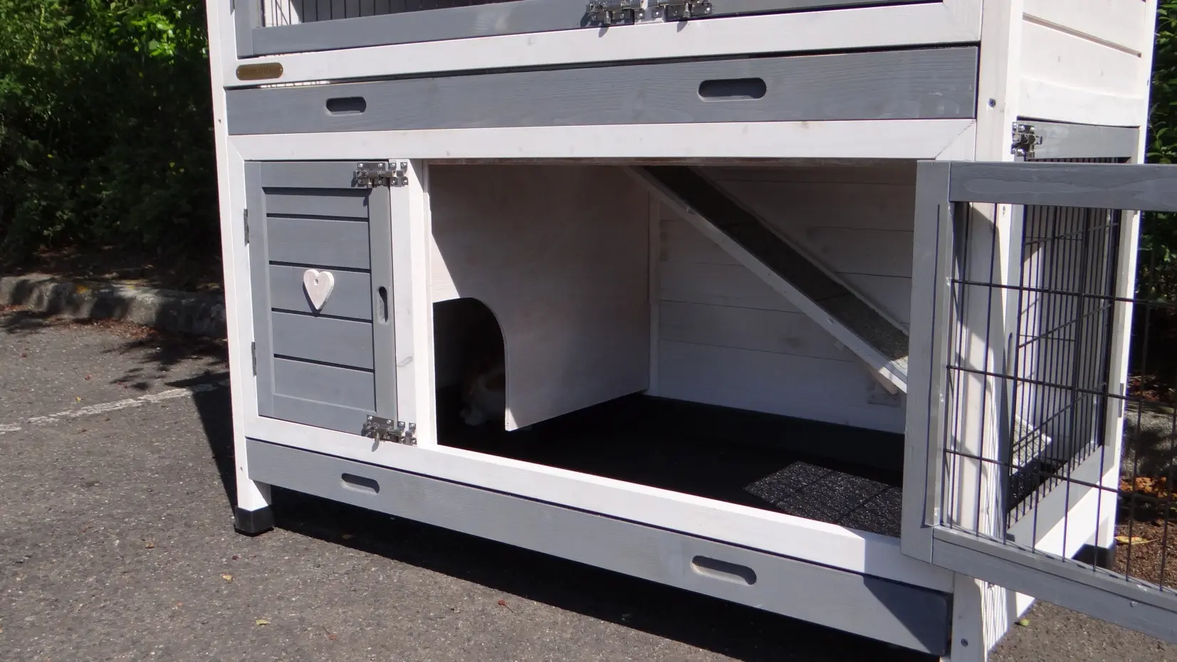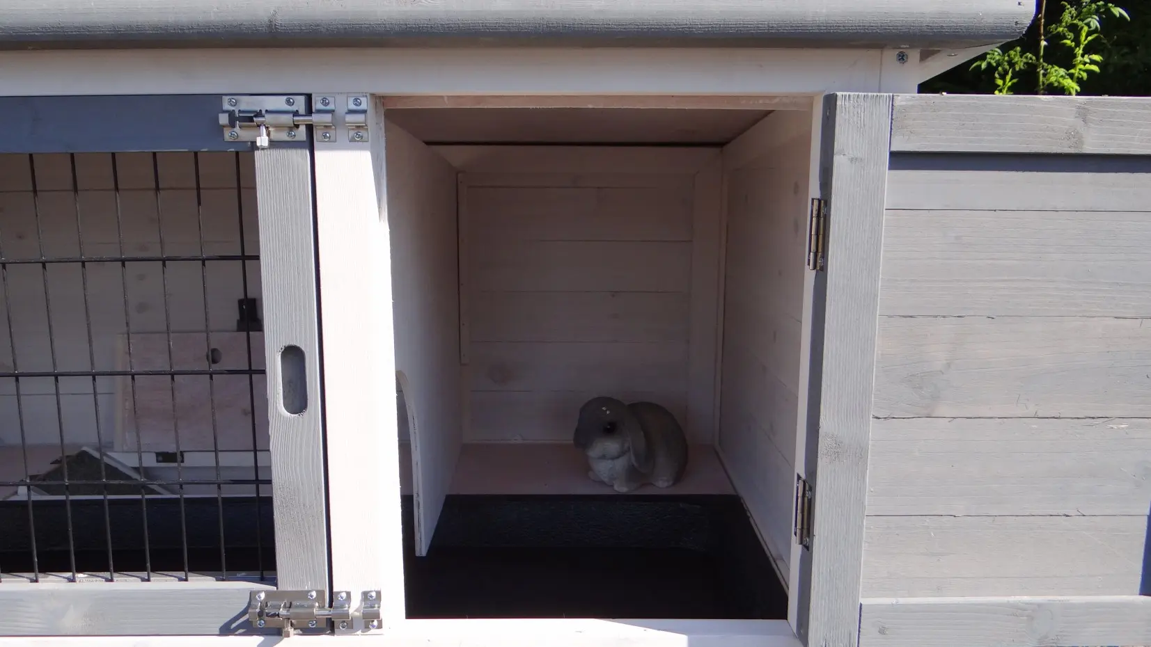 - The doors of this rabbit hutch are equiped with double locks